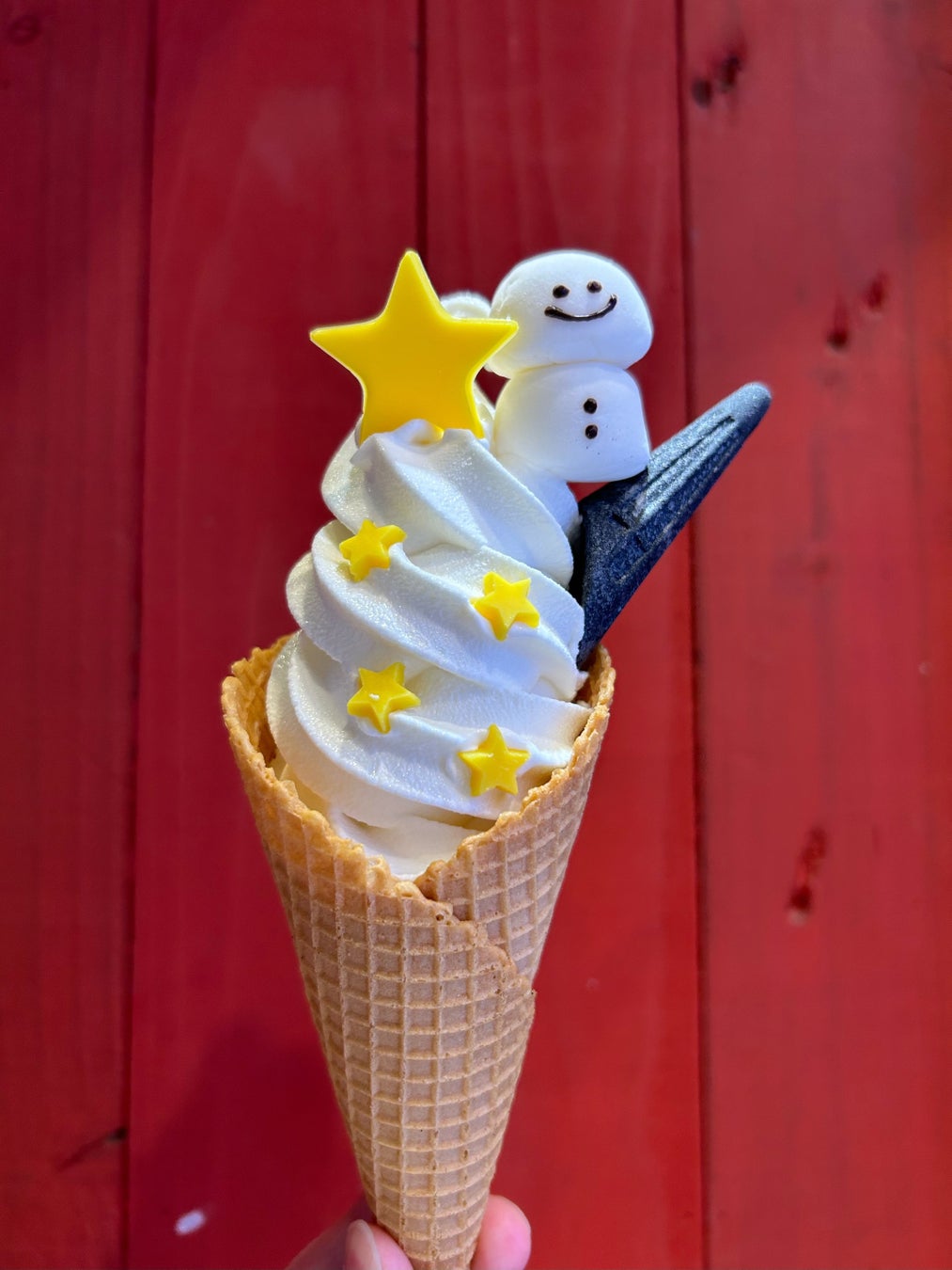内容:星のチョコをちりばめた一番人気の「牧場ミルク」にかわいいマシュマロの雪だるまがのった毎年大好評のクリスマス限定ソフト。