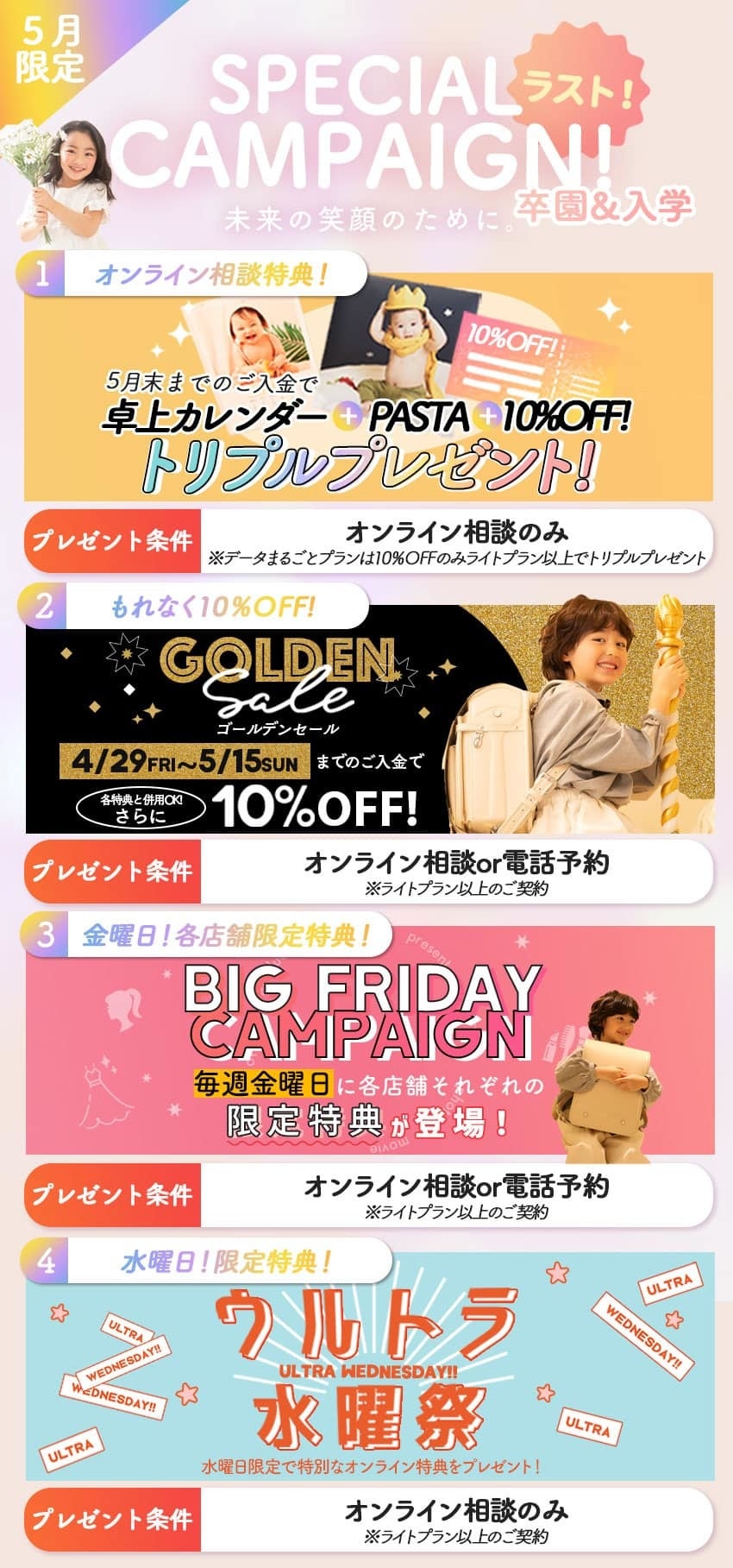 入学後撮りキャンペーン!人気の「データまるごとプラン」が店舗限定で復活決定!