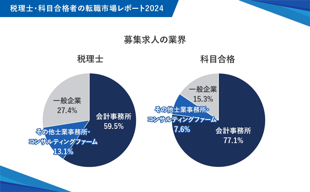 ・募集業界では、税理士・科目合格者ともに「会計事務所」が最も求人が多い