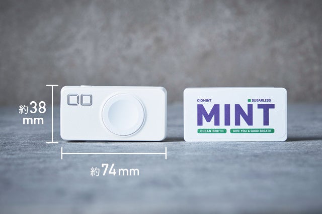 これだけの機能を搭載しながらも約38×74×18mm、ミントタブレットのように気軽に持ち運べるサイズを実現。