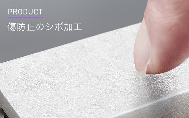 『SMARTCOBY DUAL』は、本体の表面に一眼レフカメラのボディのような粗いシボ加工を施しているため、ペンや爪で引っ搔いたりしても製品表面に傷が付きにくいという一つの機能を付加しており、より多機能性を高めました。