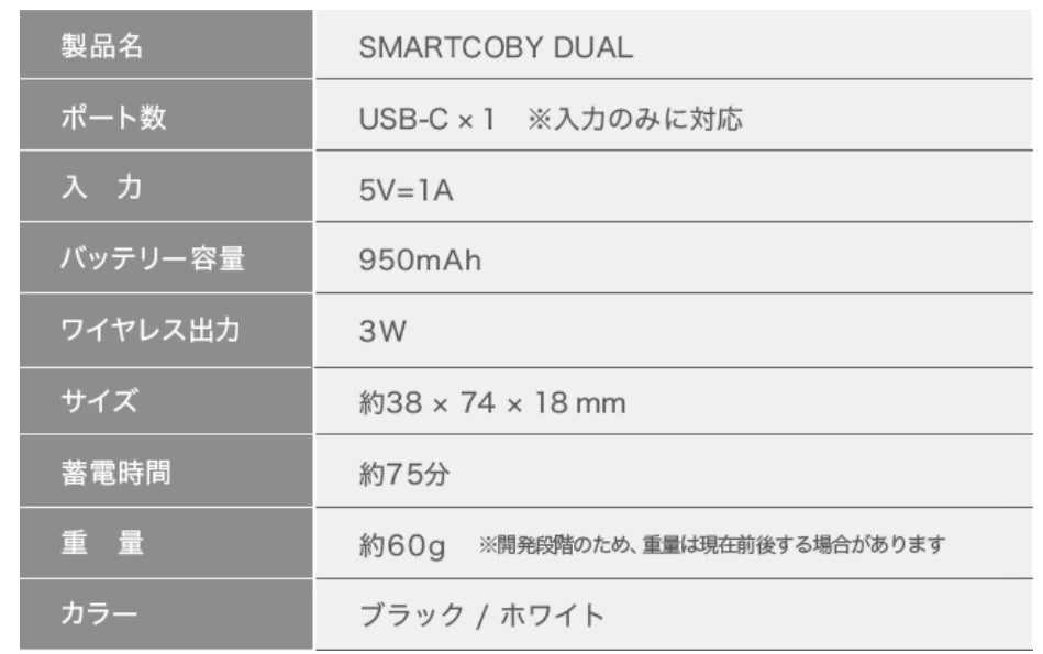 - 『SMARTCOBY DUAL』の製品仕様