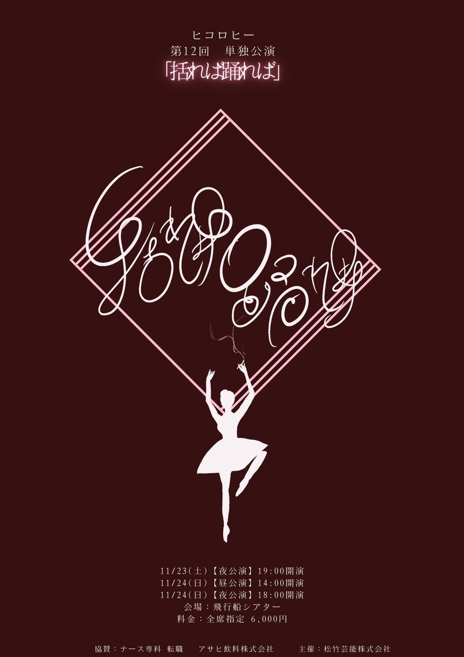 11月23日(土)24日(日)ヒコロヒー第十二回単独公演「括れば踊れば」(上野・飛行船シアター)即完公演も含め、座席調整につき若干数チケット追加発売いたします。