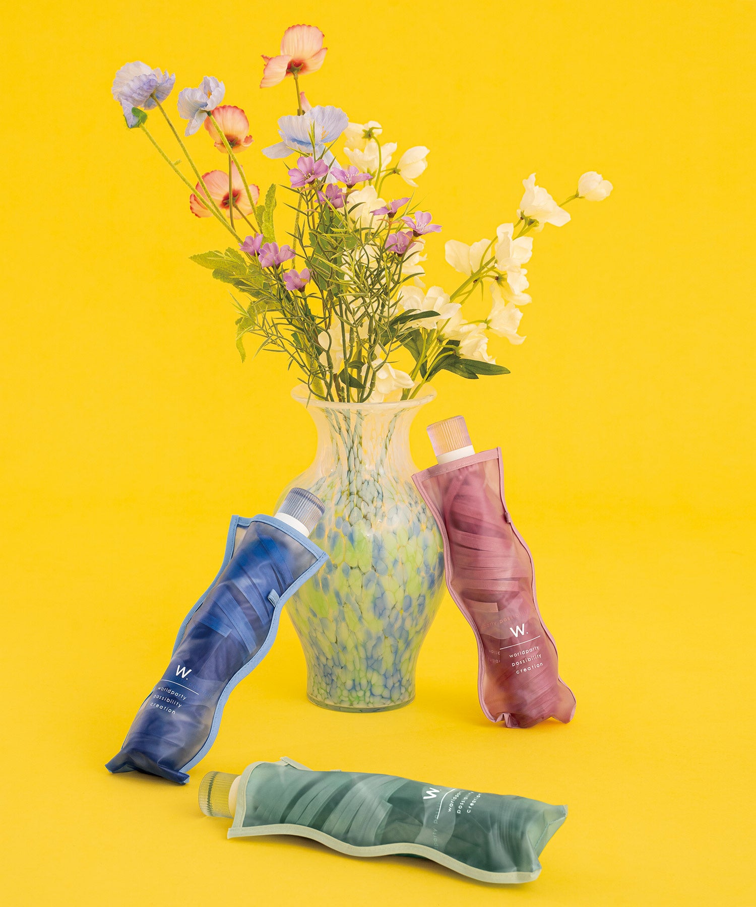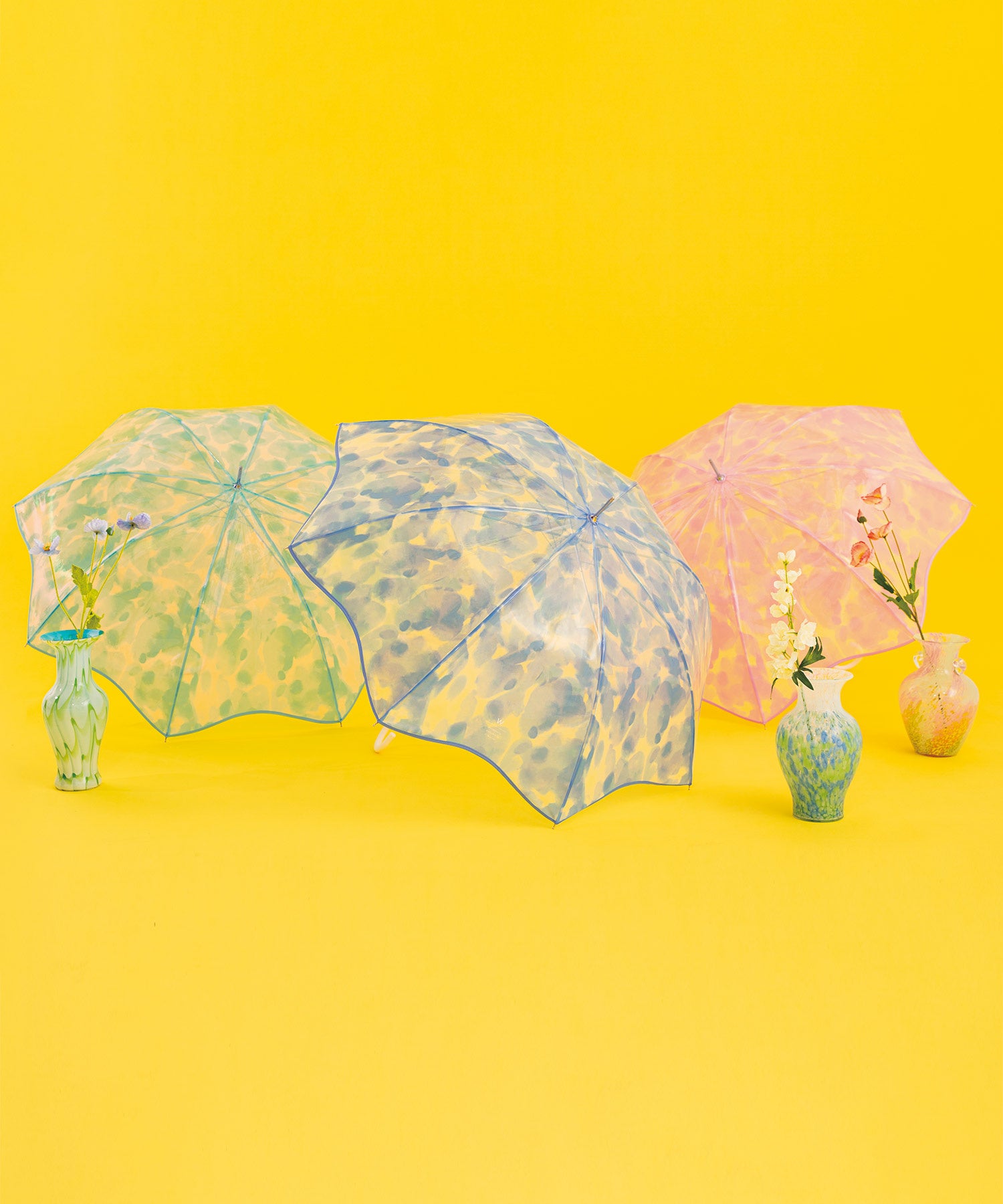 吹きガラスのオシャレな花瓶から着想を得た「フラワーベースアンブレラ」は、ガラスの透明感をビニール傘で表現しました。ピンク・グリーン・ブルーの柔らかなニュアンスデザイン、そして傘本体や折りたたみ傘のケースに落とし込んだ、花瓶を思わせる丸みのあるフォルムはまさに”芸術の秋”にぴったりの1本です。季節の花を一輪添えて贈れば、センスあふれるプレゼントに。