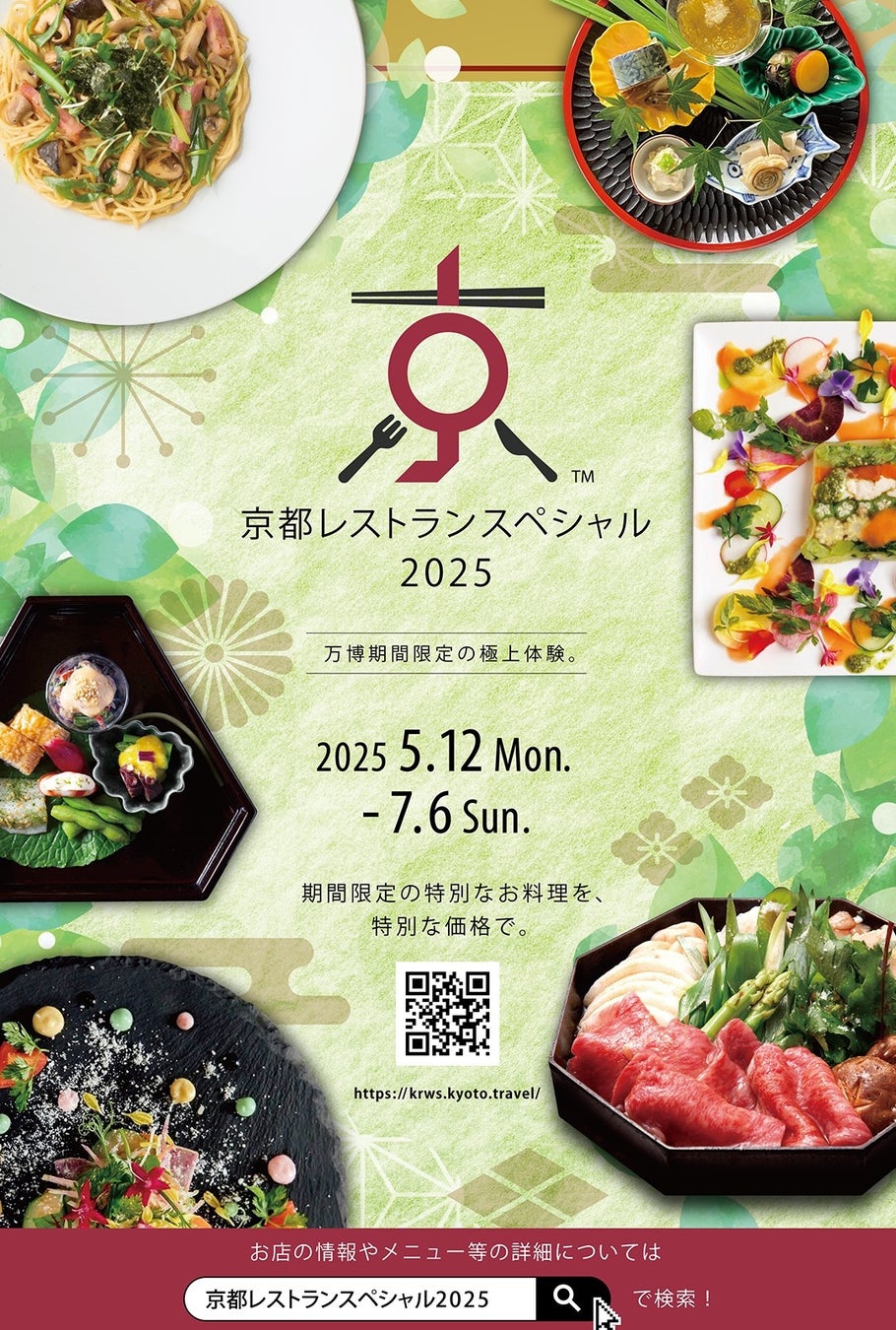 今回のレストランスペシャルは、4月13日に開幕した大阪・関西万博を記念した特別 企画として、参加店舗エリアを京都市内から京都府全域へと拡大し、京都を訪れる国内外の観光客の方はもちろん、地元京都の方にも京料理をはじめとした京の食文化の体験を通じ、多彩な「食の京都」の魅力を感じていただくとともに、京都の食材や伝統工芸など京都の 伝統も感じていただけるイベントとなります。