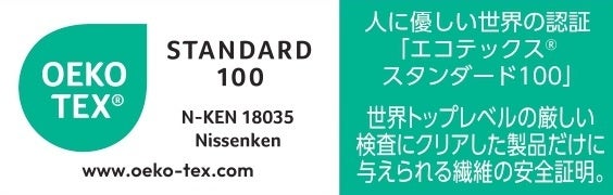 「裏地あったかパンツ」は「エコテックス®スタンダード100」認証を取得した安心・安全なサステナブル商品です。「エコテックス®スタンダード100」は、350を超える有害化学物質を対象とした厳しい分析試験をクリアした製品だけに与えられる、安全な繊維製品の証です。
