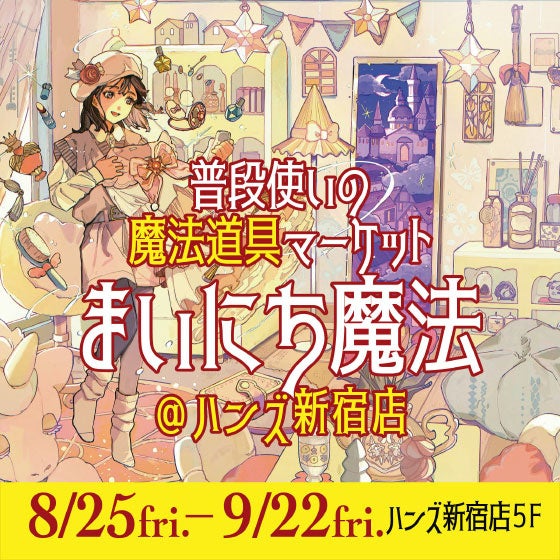 株式会社ハンズ(本社:東京都新宿区)は、「魔法」をテーマにアクセサリーや雑貨を製作するクリエイターを集った「まいにち魔法」を8月25日(金)から9月22日(金)までハンズ新宿店5Fにて開催いたします。日々の暮らしから特別な日まで、毎日に取り入れることができる、ファンタジー世界の物語からそのまま飛び出してきたような不思議で幻想的な魔法のアイテムが勢ぞろいです。