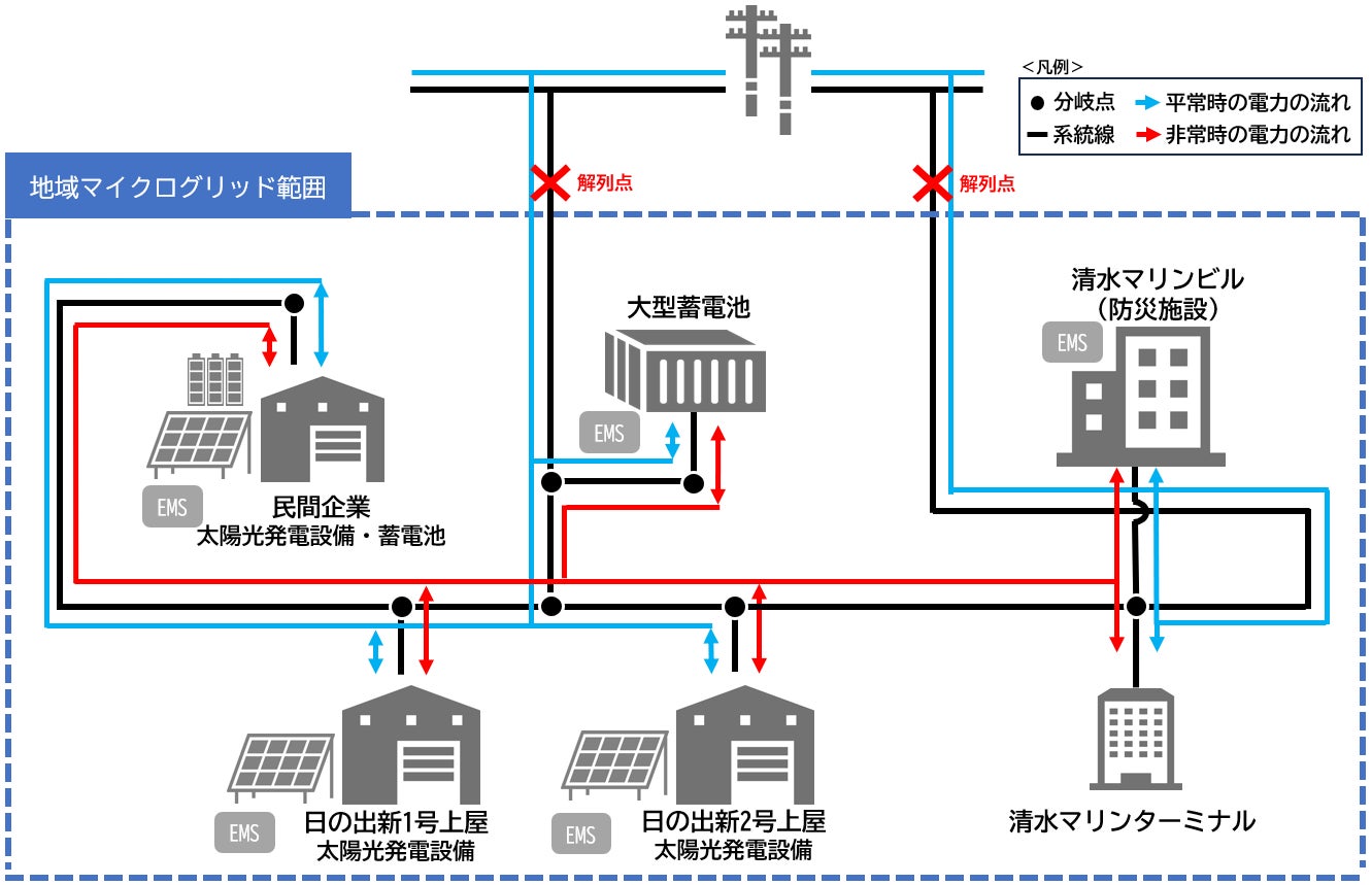 本協定は、経済産業省補助事業「令和6年度 再生可能エネルギー導入拡大に向けた分散型エネルギーリソース導入支援等事業費補助金(配電事業等の参入を見据えた地域独立系統の構築支援事業)」の交付決定を受けて、静岡県静岡市清水区日の出地区に地域マイクログリッド※1の構築・運用を目指すものです。
