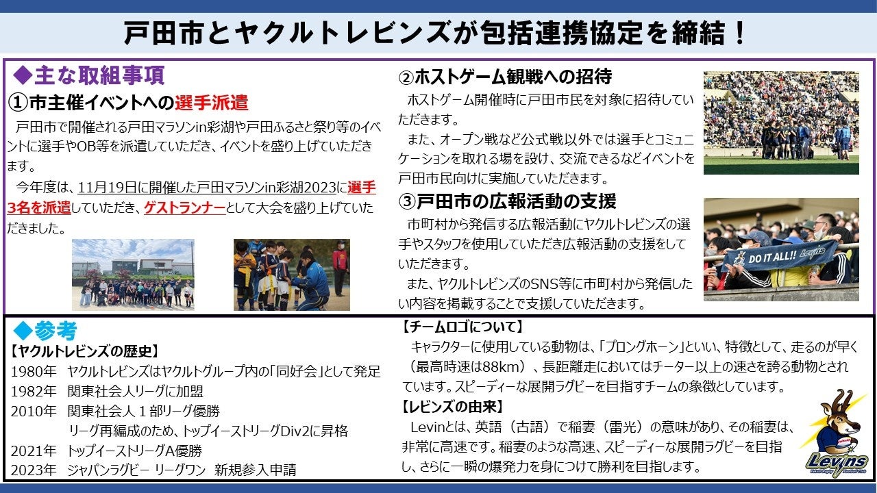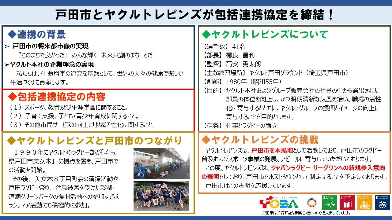 【埼玉県戸田市】戸田市とヤクルトレビンズが包括連携協定を締結します