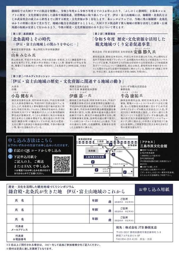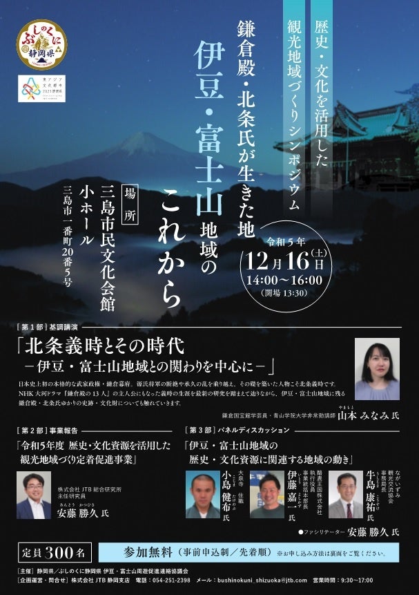 歴史・文化を活用した観光地域づくりシンポジウム「鎌倉殿・北条氏が生きた地 伊豆・富士山地域のこれから」を開催します