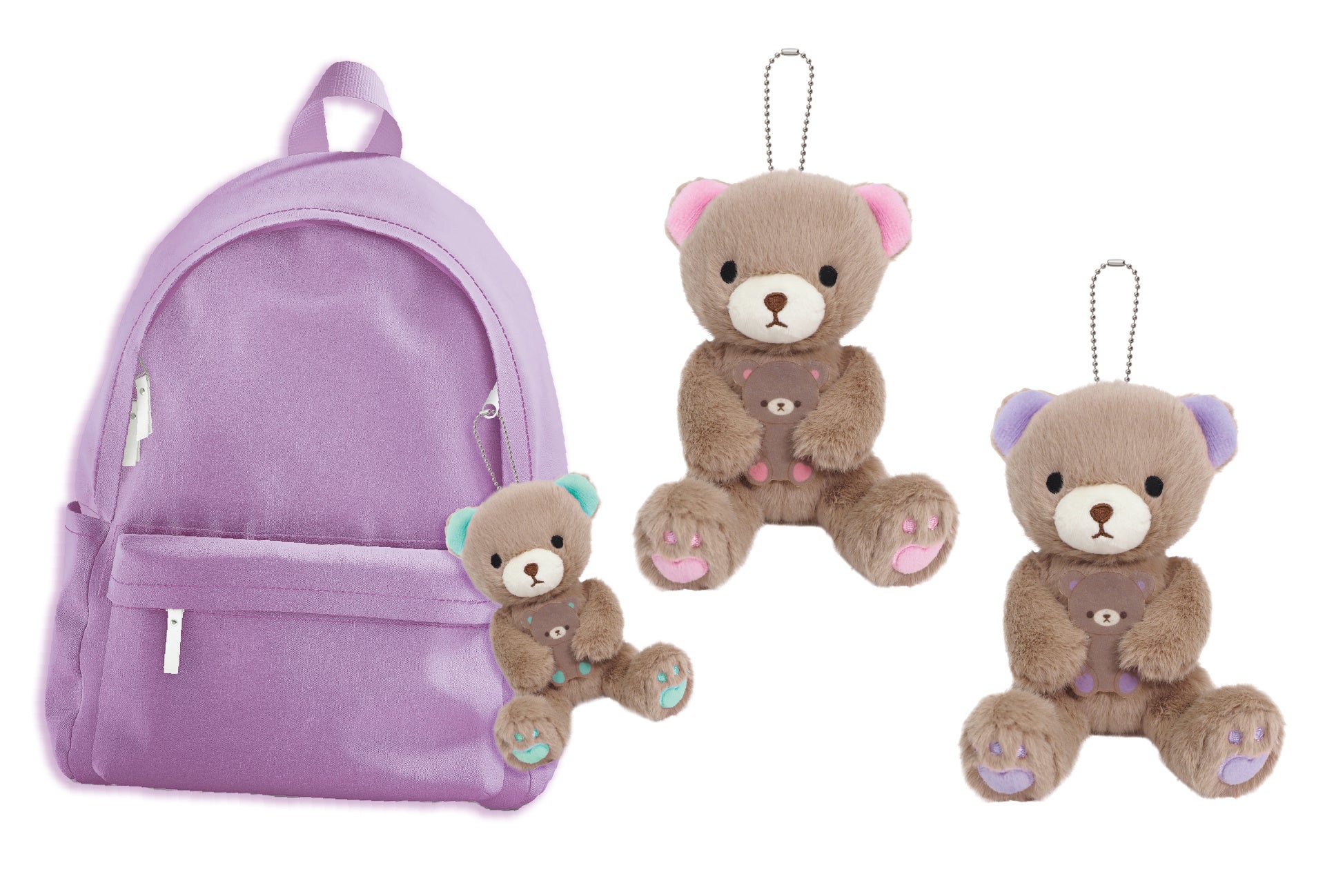 自分のぬいぐるみをぎゅーっと抱っこしている、とってもかわいい「ハグベアシリーズ」身に着けられるキーホルダーサイズから、抱きしめたくなるような25cmサイズまで!「ピンクベア・ミントベア・パープルベア」3色からお好みのカラーを選べます。年末のギフトシーズンにもぴったり!