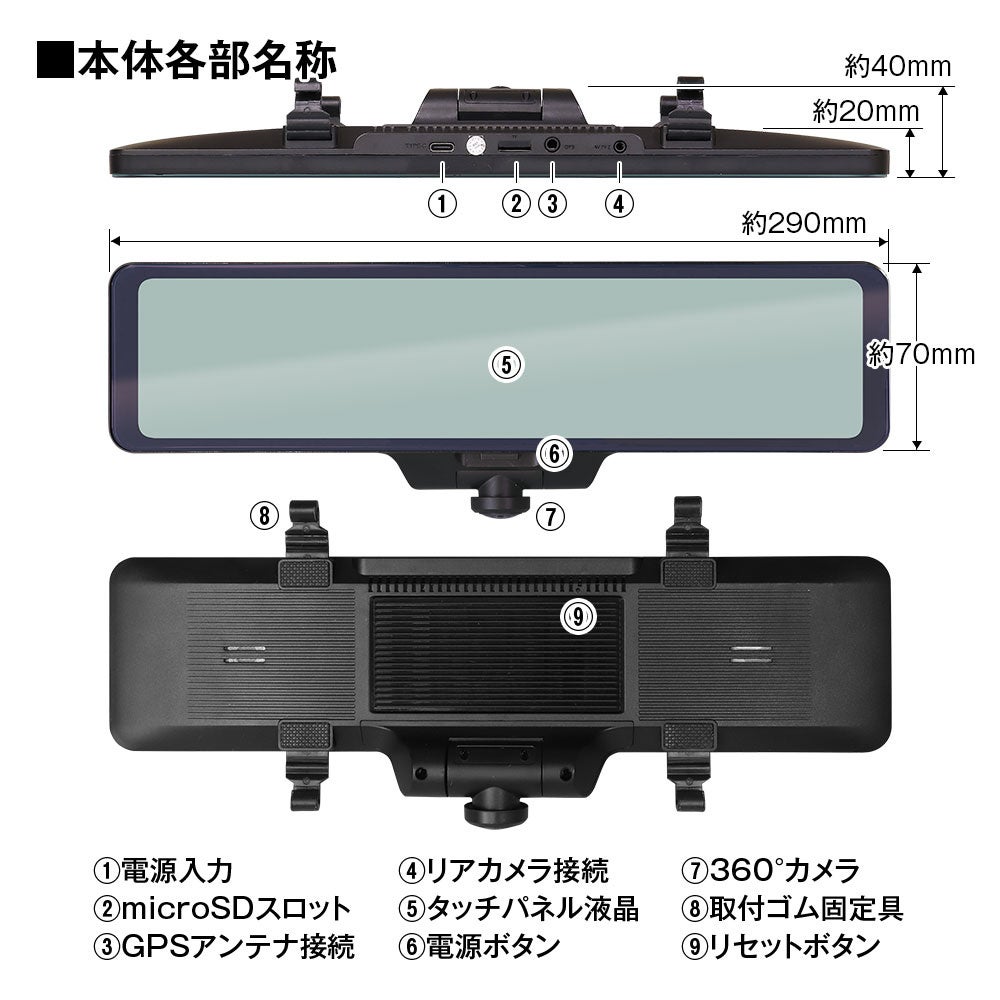 全方位切れ目なく録画できる360度カメラ搭載デジタルルームミラー