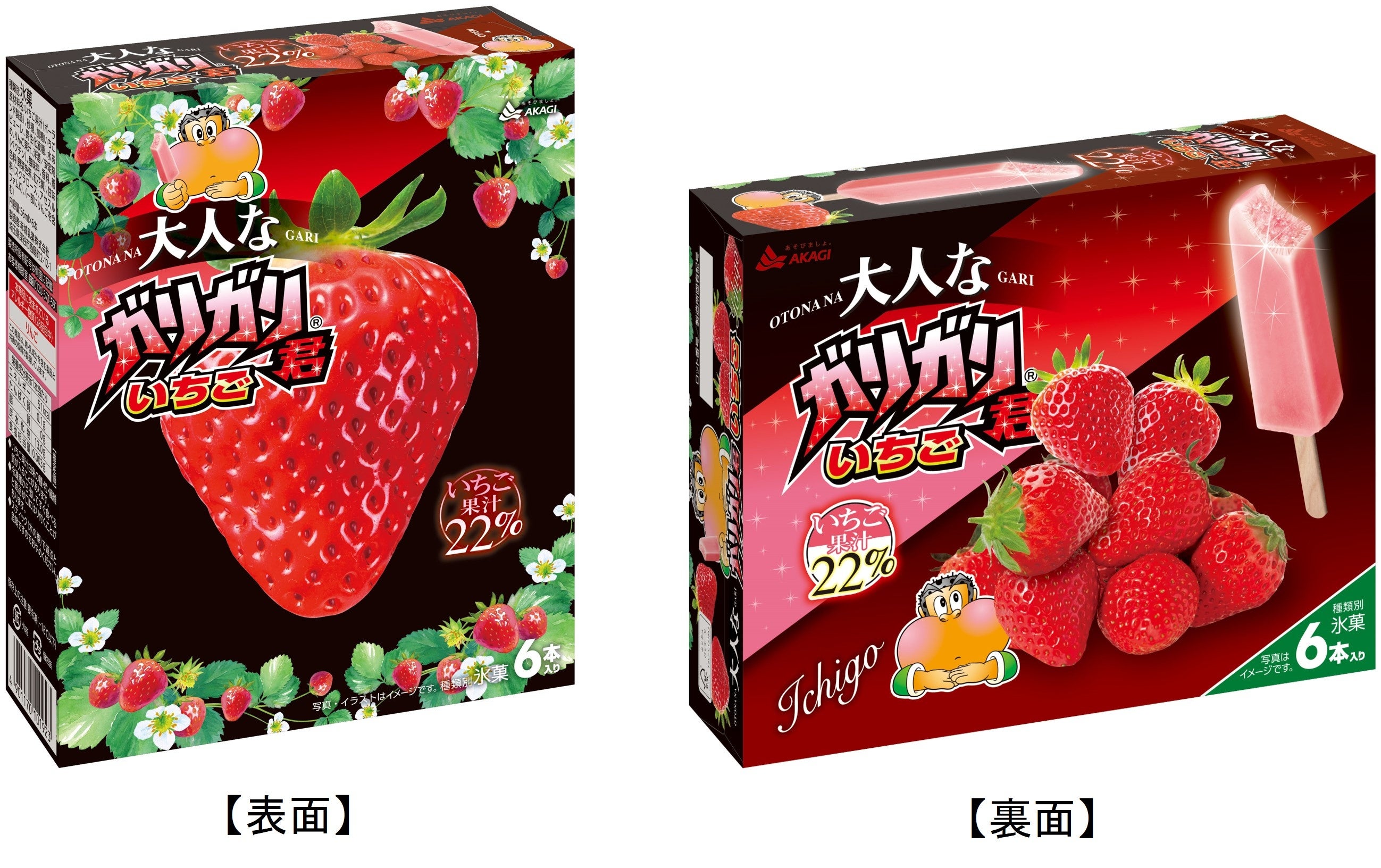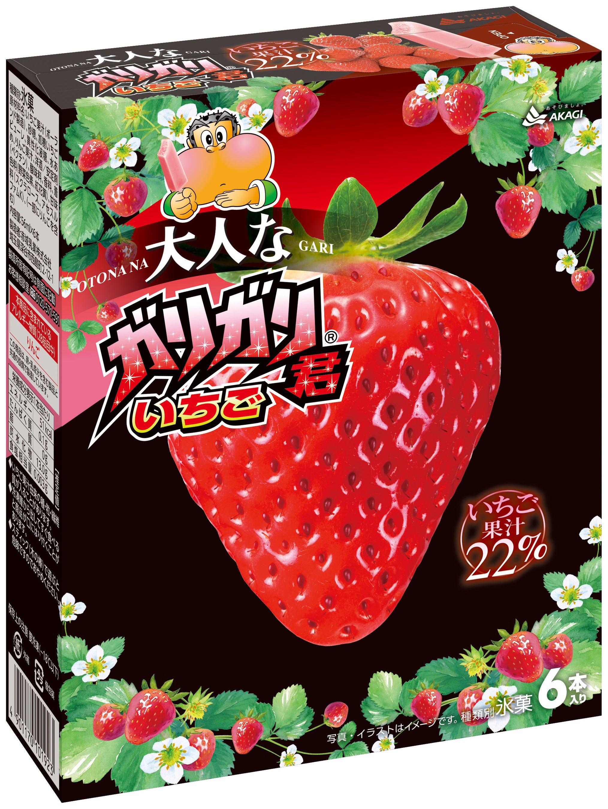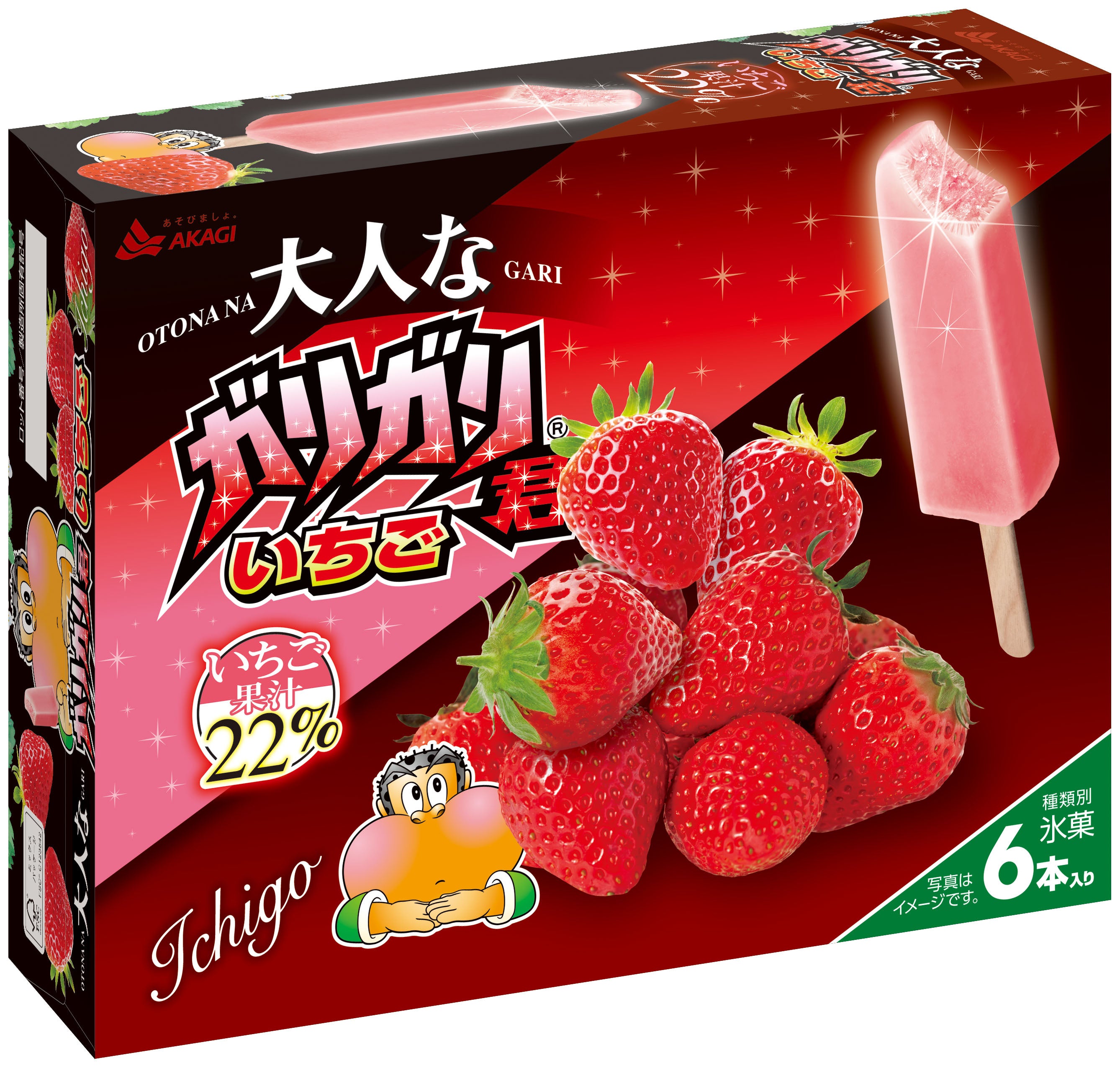 「大人なガリガリ君いちご」は、いちごアイスの中に、ガリガリ食感のジューシーないちごかき氷を入れたアイスキャンディーです。いちご果汁22%使用の本格的ないちごの風味をお楽しみいただけます。