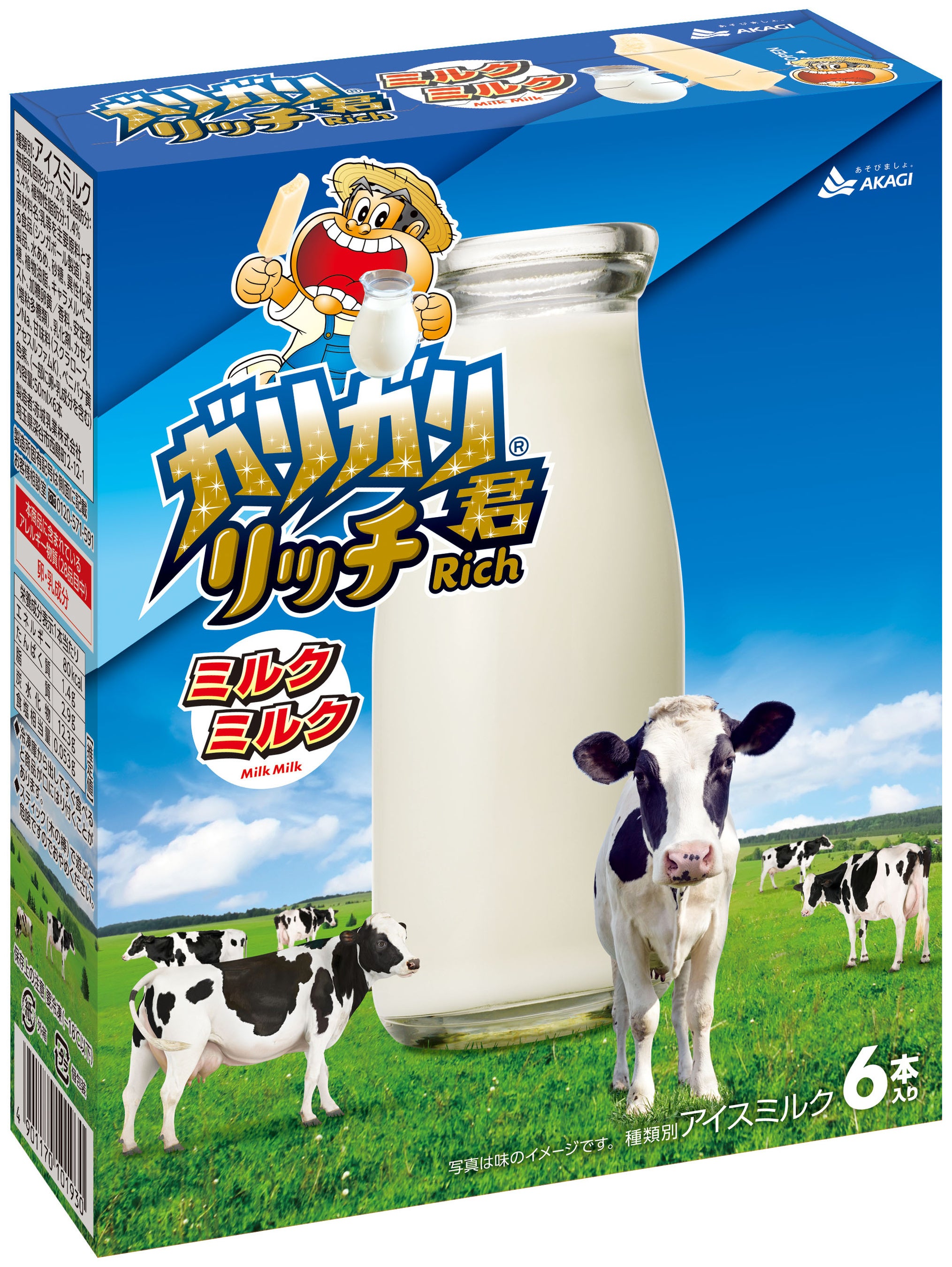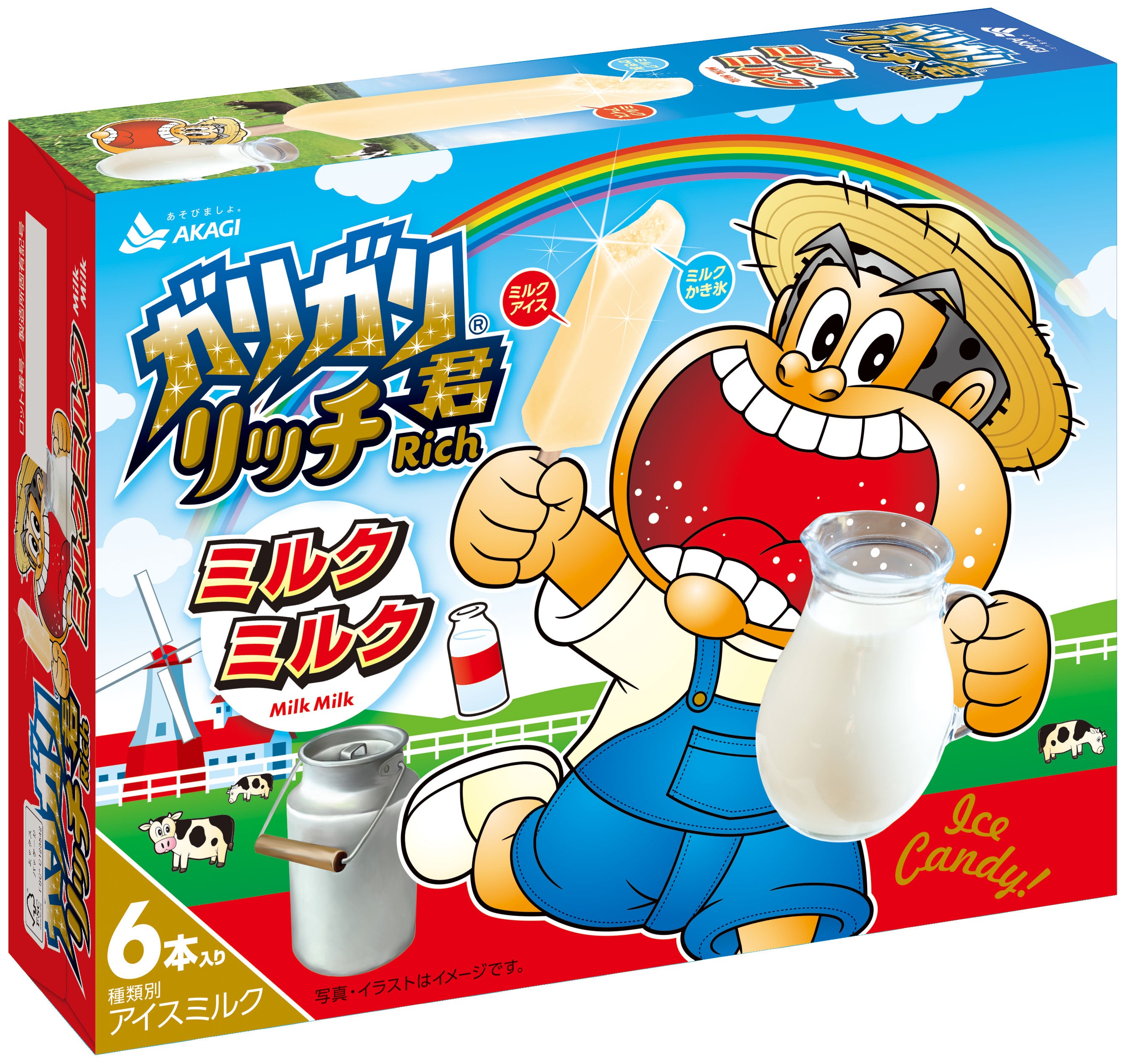 「ガリガリ君リッチミルクミルク」は、ミルクアイスの中に、ガリガリ食感の濃厚なミルクかき氷を入れたアイスキャンディーです。