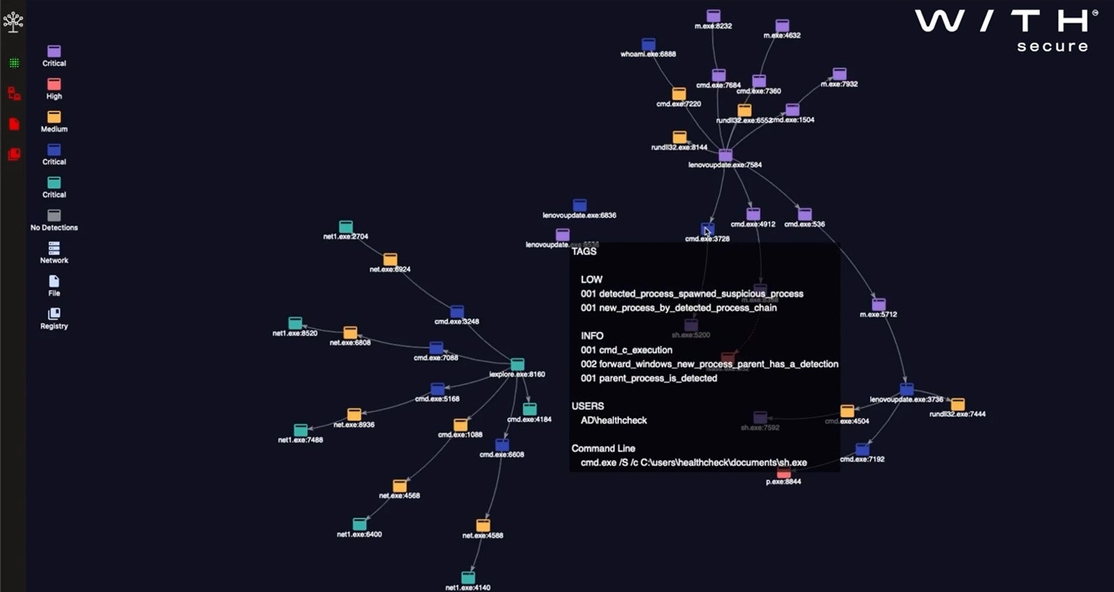 ウィズセキュアのManaged Detection and Resposense (MDR)サービスのシニアスレットハンターであるTom Barrow (トム・バロウ) は、インシデントレスポンス担当者にとってはエンドポイント上の疑わしいイベント間の繋がりを発見することが最も重要だと説明しています。