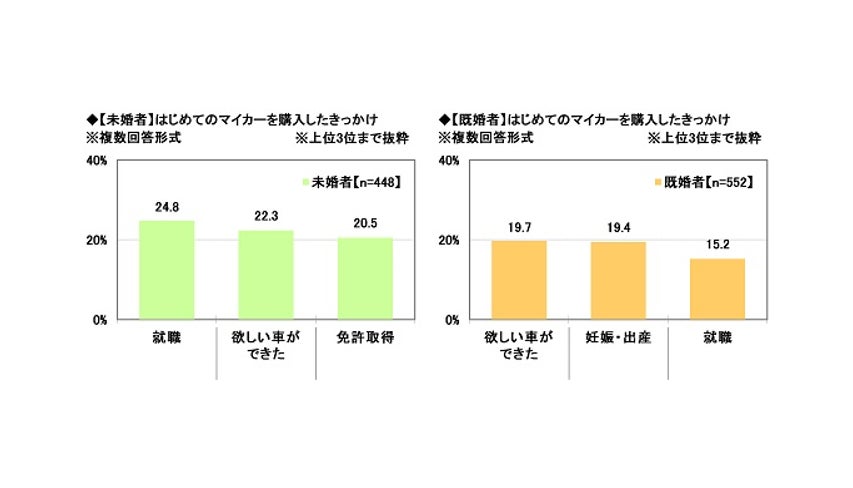 ◆はじめてのマイカーを購入したきっかけ 1位「欲しい車ができた」2位 「就職」