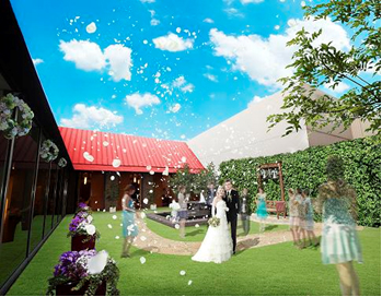 設計・施工 : 中庭/株式会社クリエイティブ阪急 チャペル屋根/株式会社丹青社