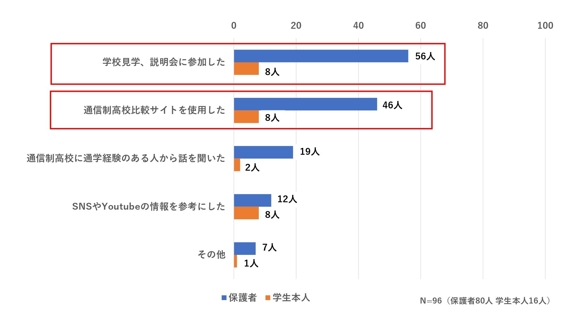 ・有効回答数:96件(保護者:80件・学生本人16件)