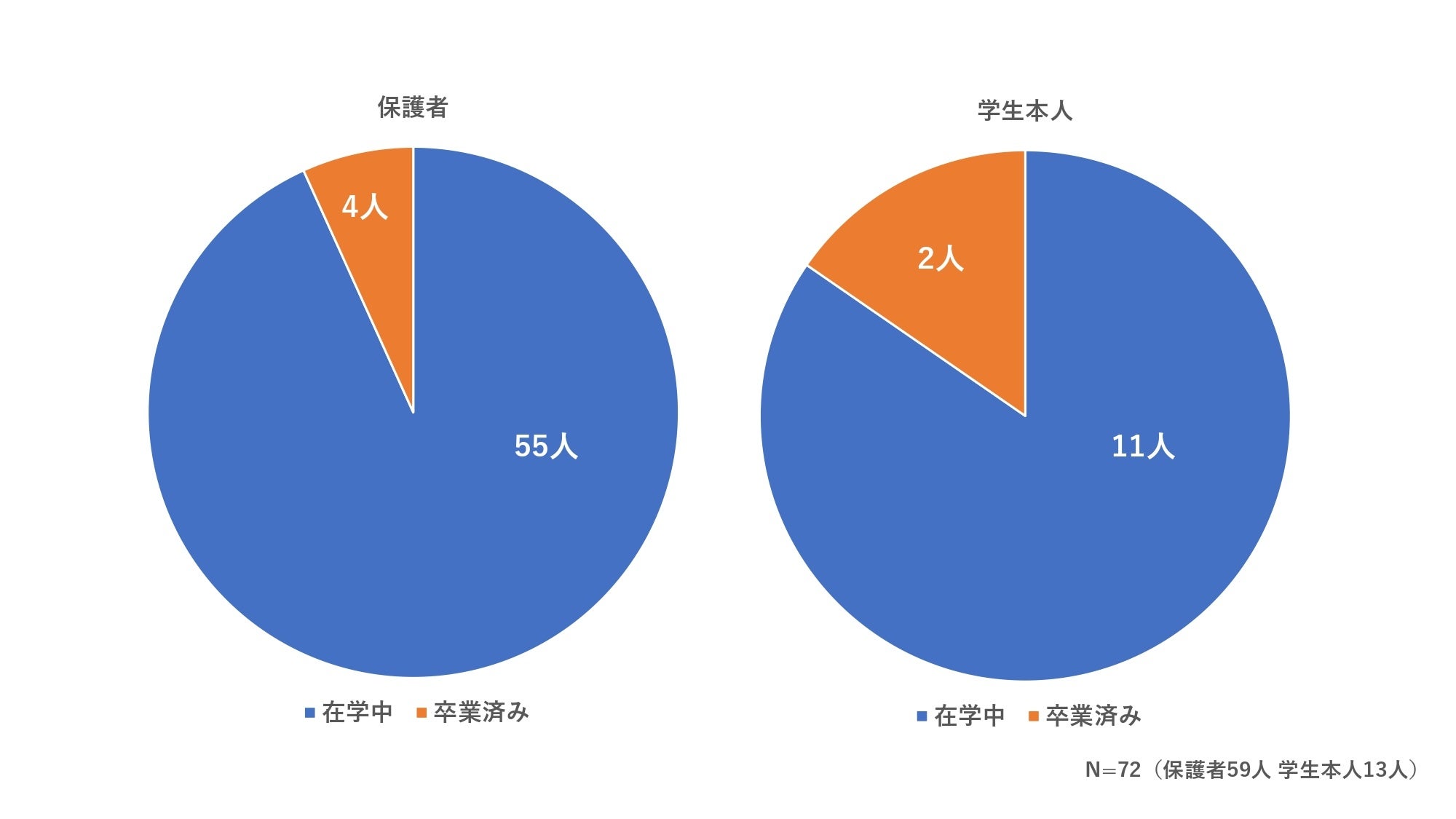 アンケート回答者96人のうち、通信制高校へ進学した保護者59人、学生本人13人に質問。