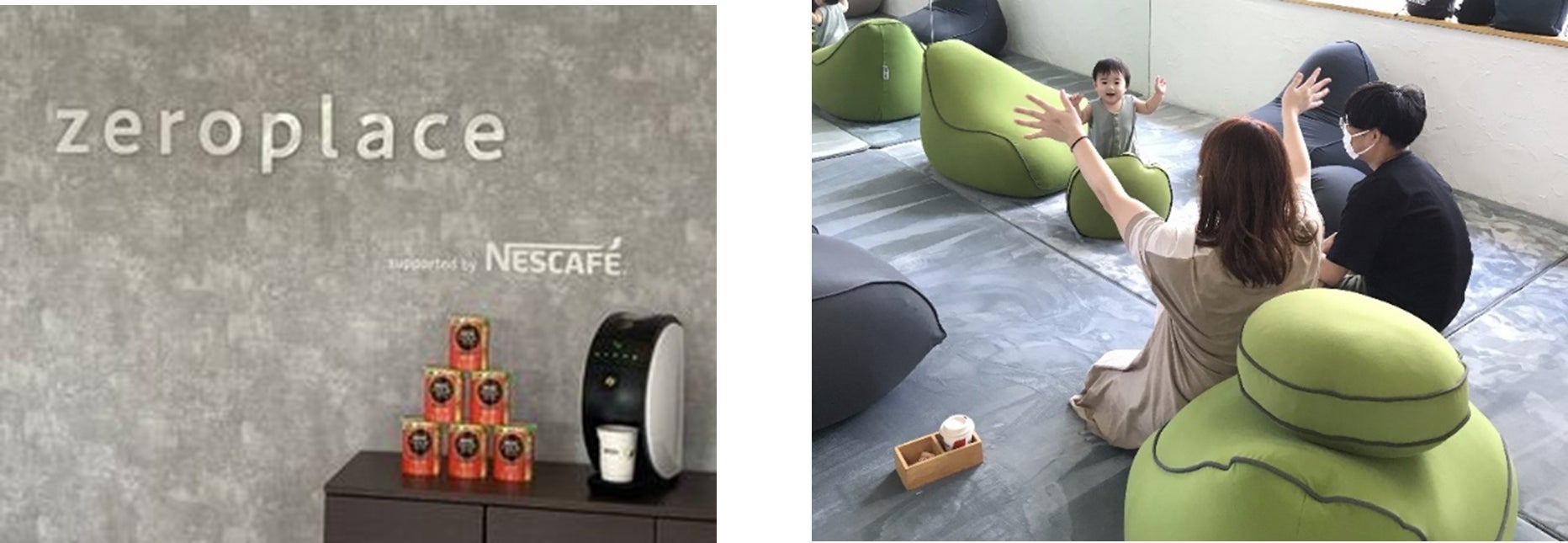 「ネスカフェ」のコーヒーを始めとした飲み物だけでなく、快適な座り心地が話題のビーズソファ“Yogibo(ヨギボー)”の”Yogibo Mini(ヨギボーミニ)”を設置したLoungeエリアを併設しているので、産後ケアが必要なママ以外にも、妊婦さん、パパをはじめとしたパートナーやご家族など、子育てに関わる幅広い人々がゆったり過ごせる空間となっています。