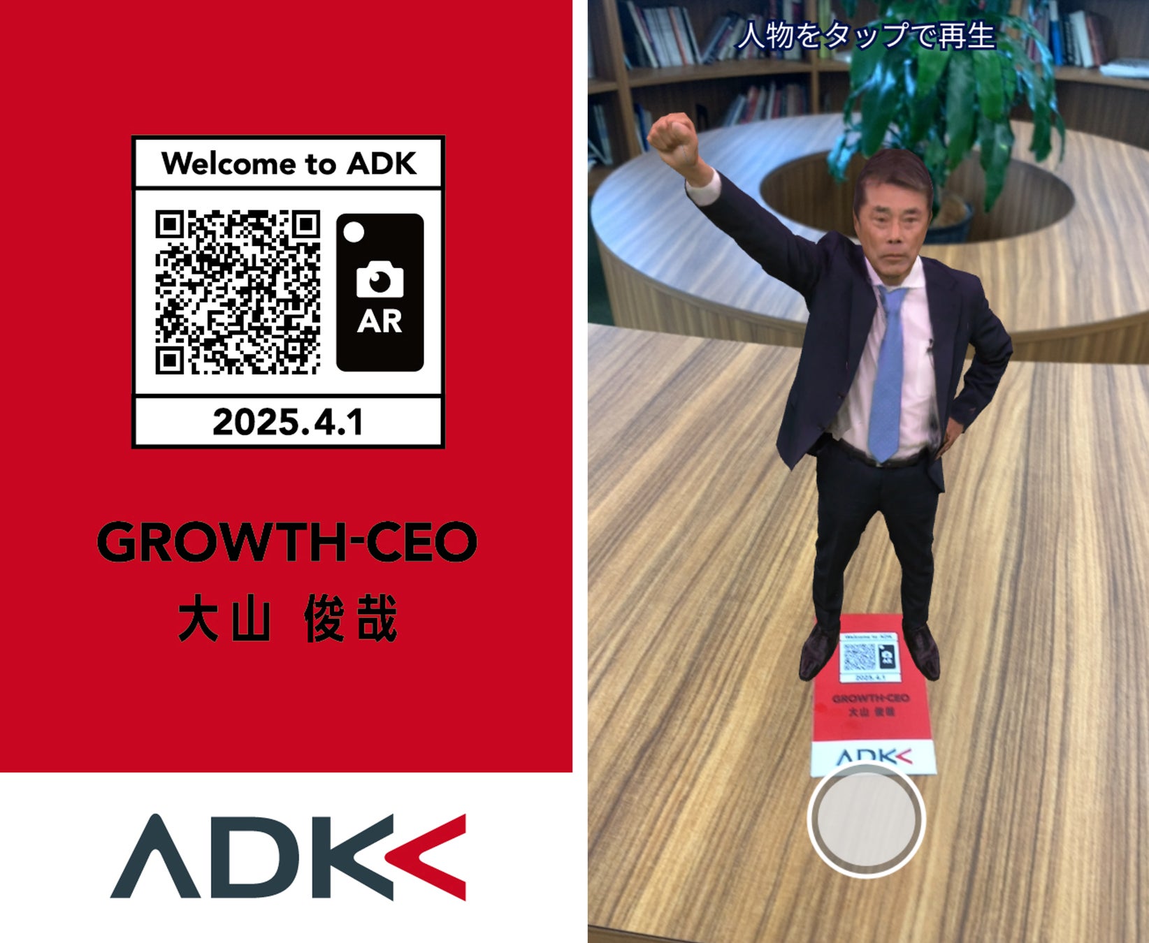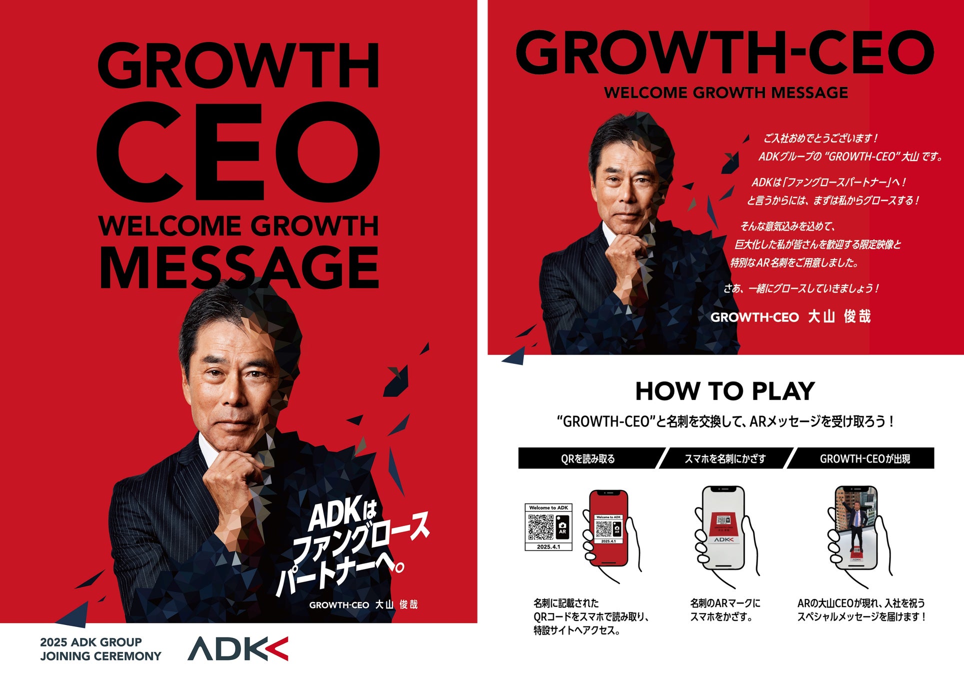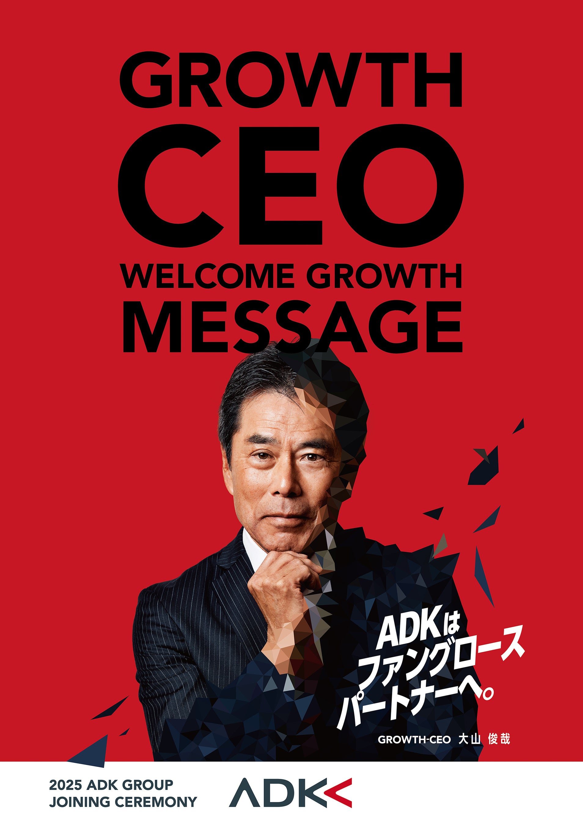 「GROWTH-CEO WELCOME GROWTH MESSAGE」は、ADKグループの事業ビジョン「ファングロースパートナー*3」を表現するため、巨大化(グロース)した代表取締役社長グループCEOの大山が、当社が本社を置く虎ノ門ヒルズの3DCGデータを配置したバーチャル空間から入社を祝う特別映像となっています。