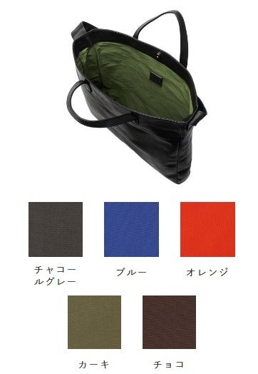 外装はシーンやスタイルを選ばない「ブラウン」「ブラック」の2色、内装はバリエーション豊富な「チャコールグレー」「ブルー」「オレンジ」「カーキ」「チョコ」の5色展開。内装の素材は綿生地を採用し、「TSUCHIYA CUSTOM」オリジナル刻印が入ります。お好みに合わせて、計10通りの組み合わせからセレクトできます。