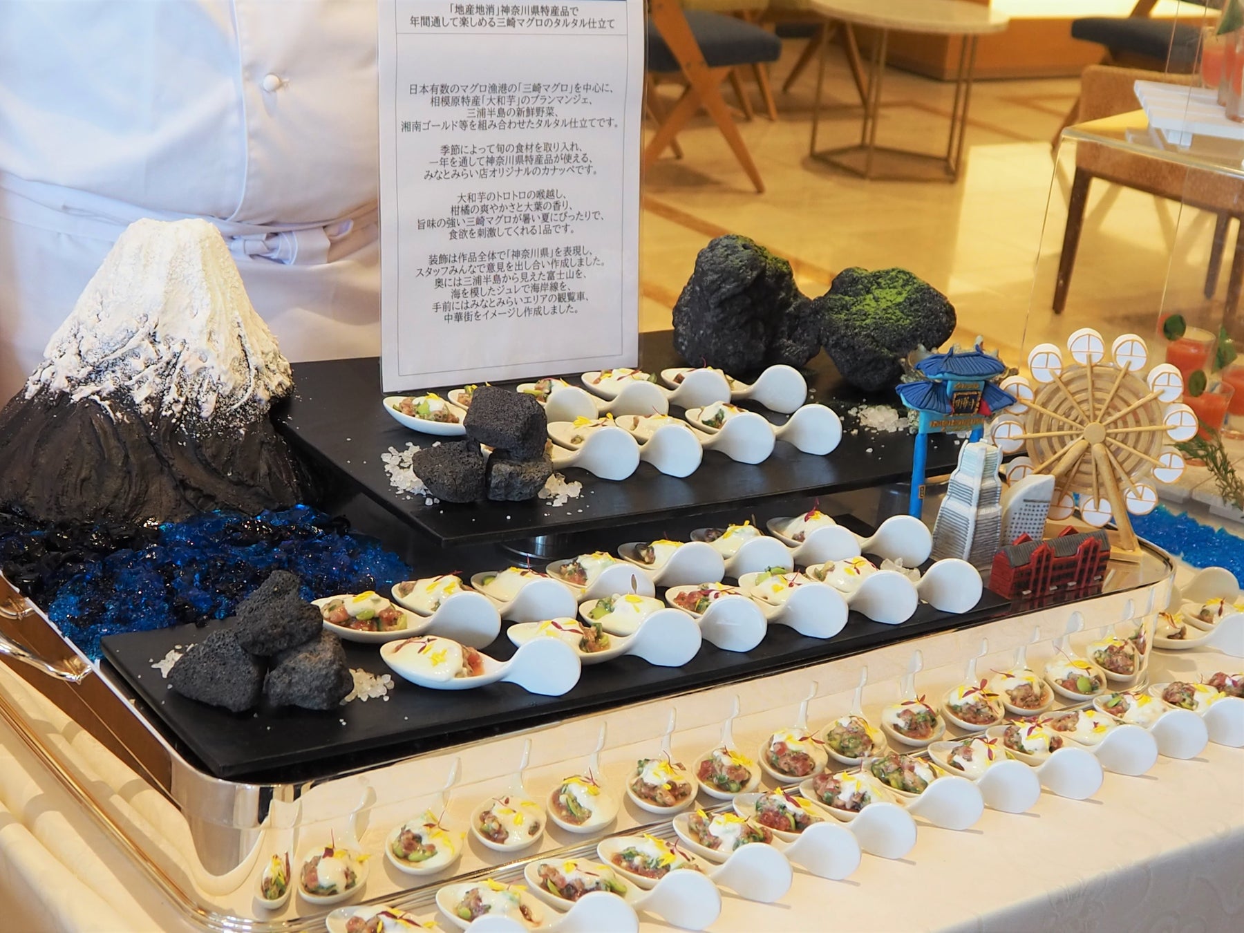 今回から店舗対抗戦「サステナビリティ部門」を新たに導入。自然な有機農法で生産された食材選びや、地産地消の推進につながるメニュー考案など、料理長を中心に各店舗のスタッフたちが工夫を凝らした様々なアイデアが発表されました。