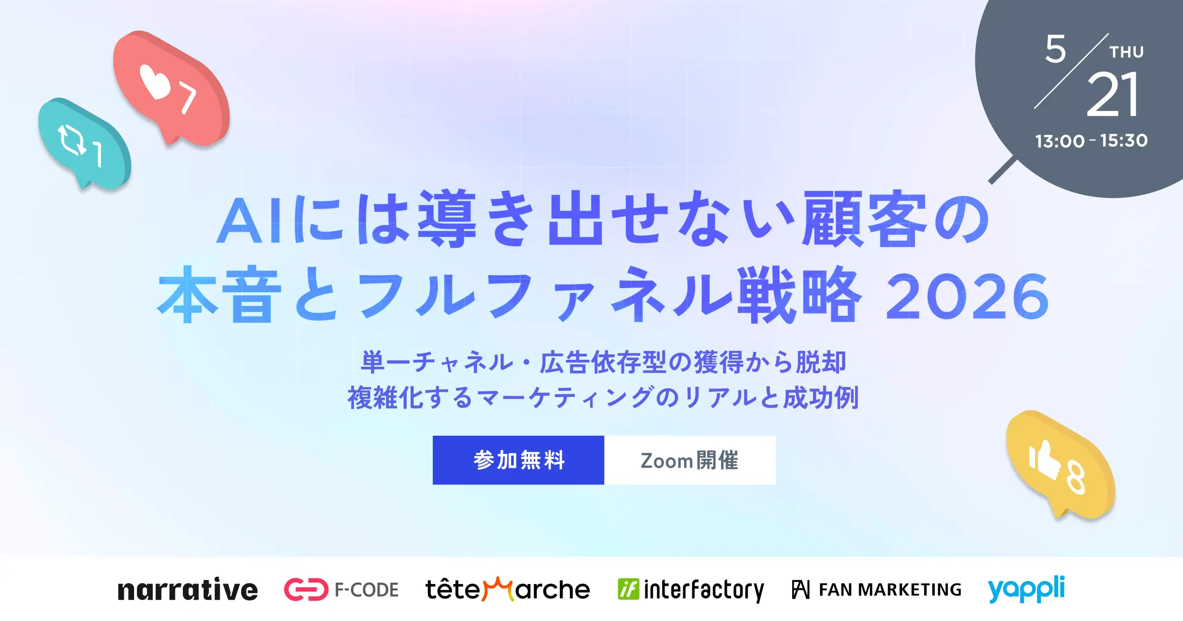 【共催ウェビナー登壇のお知らせ】AIには導き出せない顧客の本音とフルファネル戦略 2026~単一チャネル・広告依存型の獲得から脱却複雑化するマーケティングのリアルと成功例~