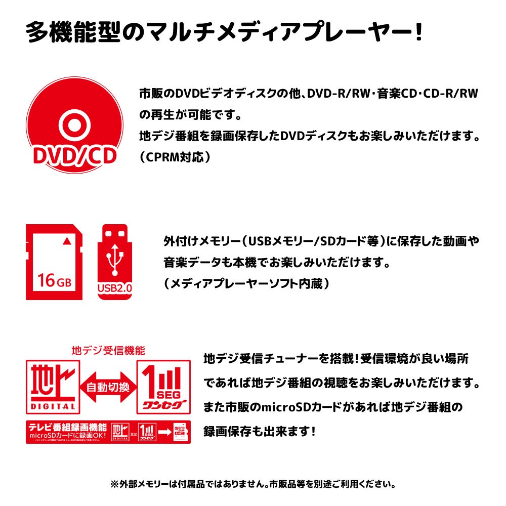 OVER TIME® 地デジTVチューナー搭載 9インチ DVDプレーヤー OT-MFT90AK