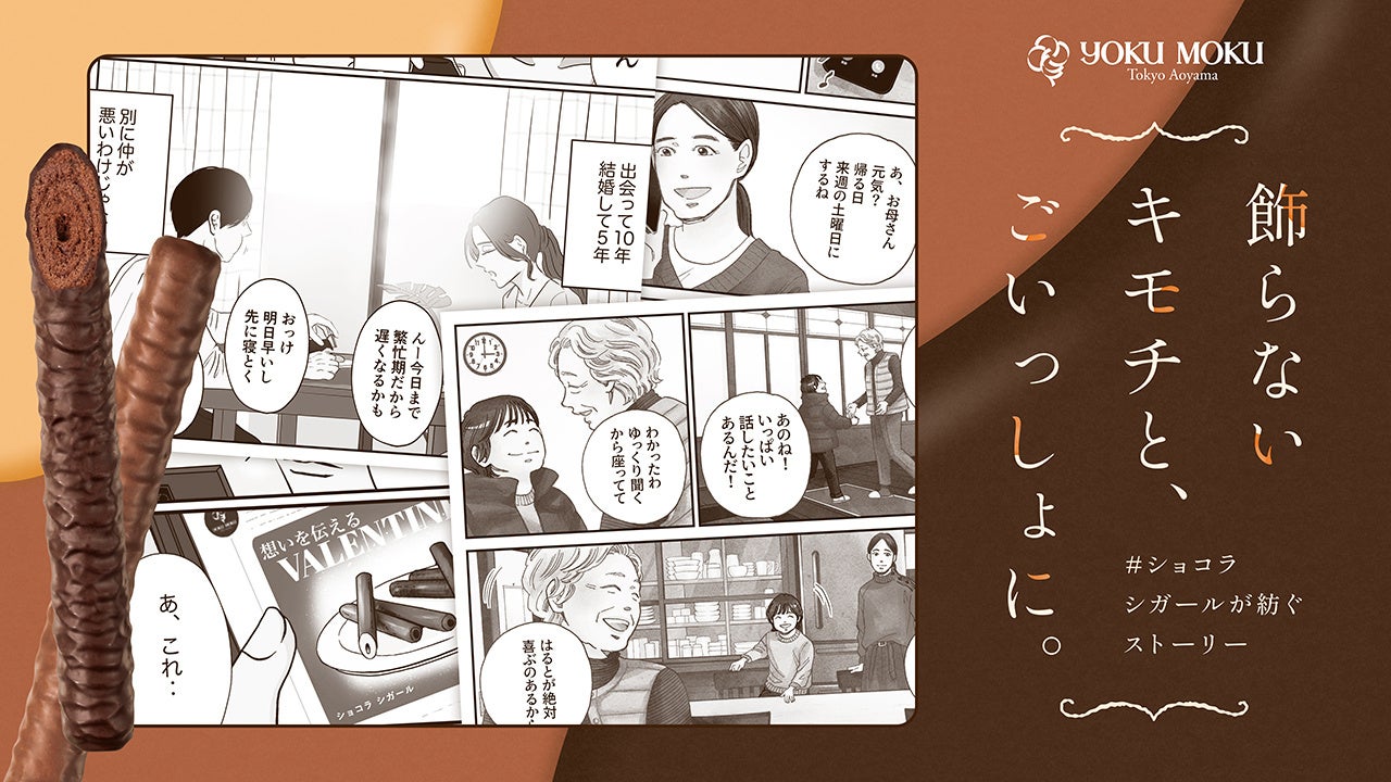 株式会社ヨックモック(本社:東京都千代田区、代表取締役:藤縄 武士) は、冬限定「ショコラ シガール」のリニューアル発売を記念し、2025年1月15日(水)より特設サイトおよびヨックモック公式Xにて、作品展示企画「飾らないキモチと、ごいっしょに。」を公開します。本企画では、人気漫画家3名が描き下ろした3つのオリジナルストーリーを通じて、あらゆる家族の形の中で「ショコラ シガール」が紡ぐ心の交流をお届けします。感謝を伝えたい人に。好きを言いたい人に。想いを届けたい人に。あなたにとって大切な人と繋がってほしいから。「ショコラ シガール」といっしょに、“ありのままの言葉”を送ってみませんか。