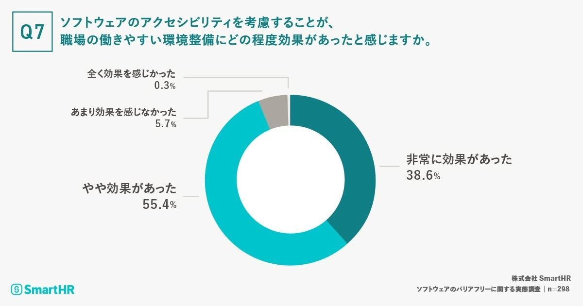 SmartHR、『ソフトウェアのバリアフリーに関する実態調査』を実施。社内のソフトウェア導入時に『アクセシビリティ』を考慮している企業の94.0%が、職場の働きやすい環境整備に「効果があった」と実感