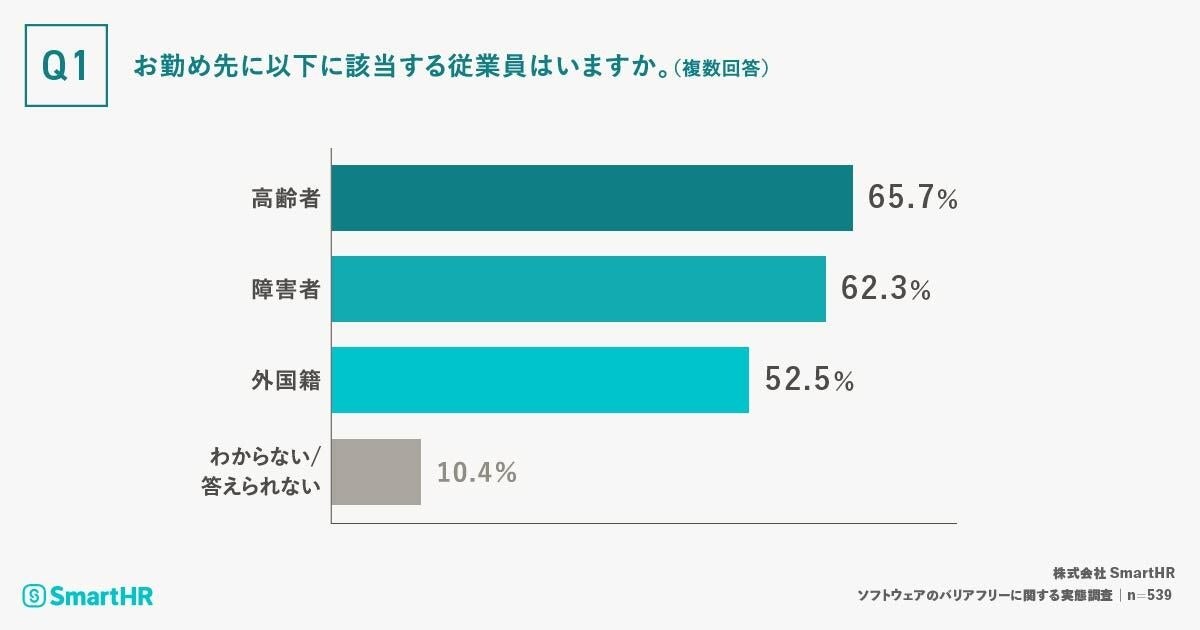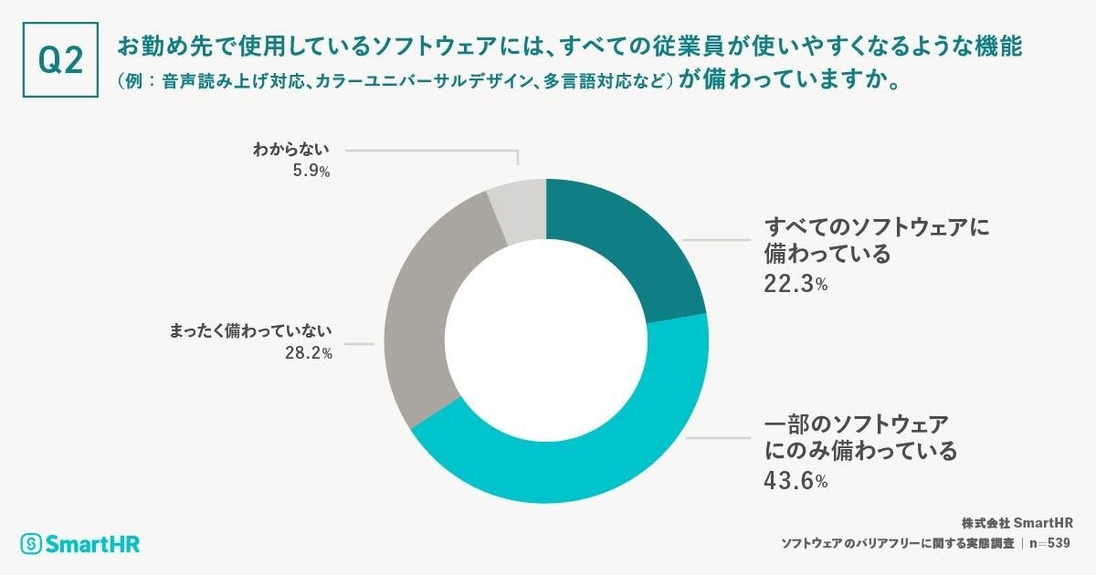クラウド人事労務ソフト「SmartHR」を運営する株式会社SmartHR(本社:東京都港区、代表取締役CEO:芹澤 雅人)は、社内のソフトウェアやシステム導入に携わっている担当者539名を対象に、ソフトウェアのバリアフリーに関する実態調査を実施しました。