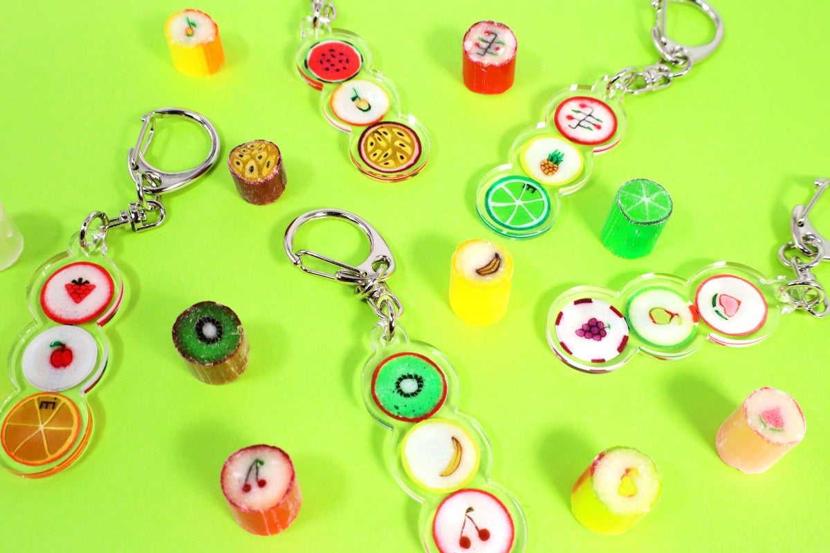 透け感がかわいい実物のキャンディをプリントしたキーホルダー