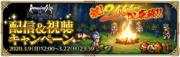 さらに、配信開始時にアプリ設定を『ロマンシング サガ リ・ユニバース』にして、15分以上配信した累計配信者数が2000人を突破すると、「Mirrativ」初となるアニメーション背景をプレゼント!