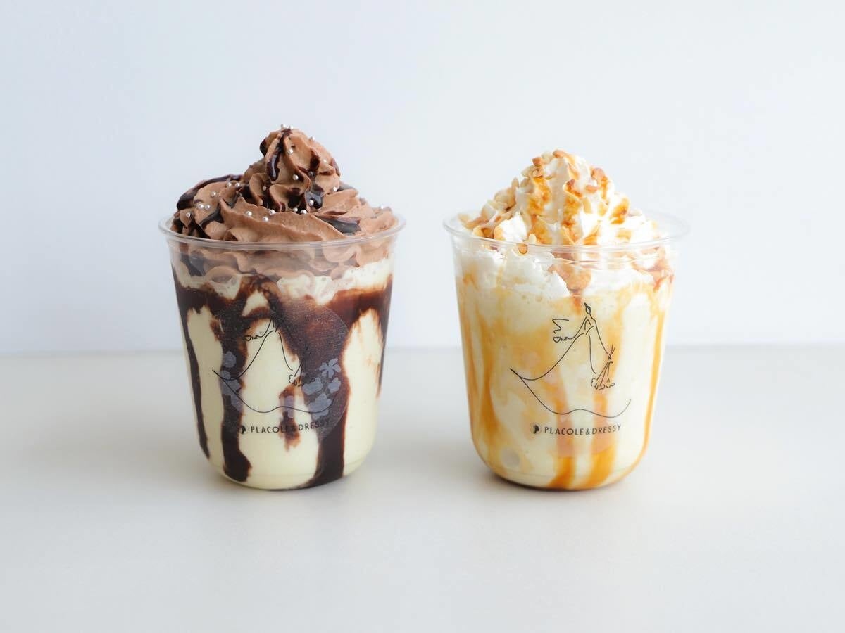 期間限定フラッペメニューはバナナを丸ごと1本つかったフラッペ。チョコレートとキャラメルの2種をご用意。クリームまでチョコレート、トッピングで食感も楽しめるチョコとバナナの王道の組み合わせと、たっぷりキャラメルソースで甘めのナッツがアクセントになりクリーミーでミルク感もある2種のフラッペとなっております。