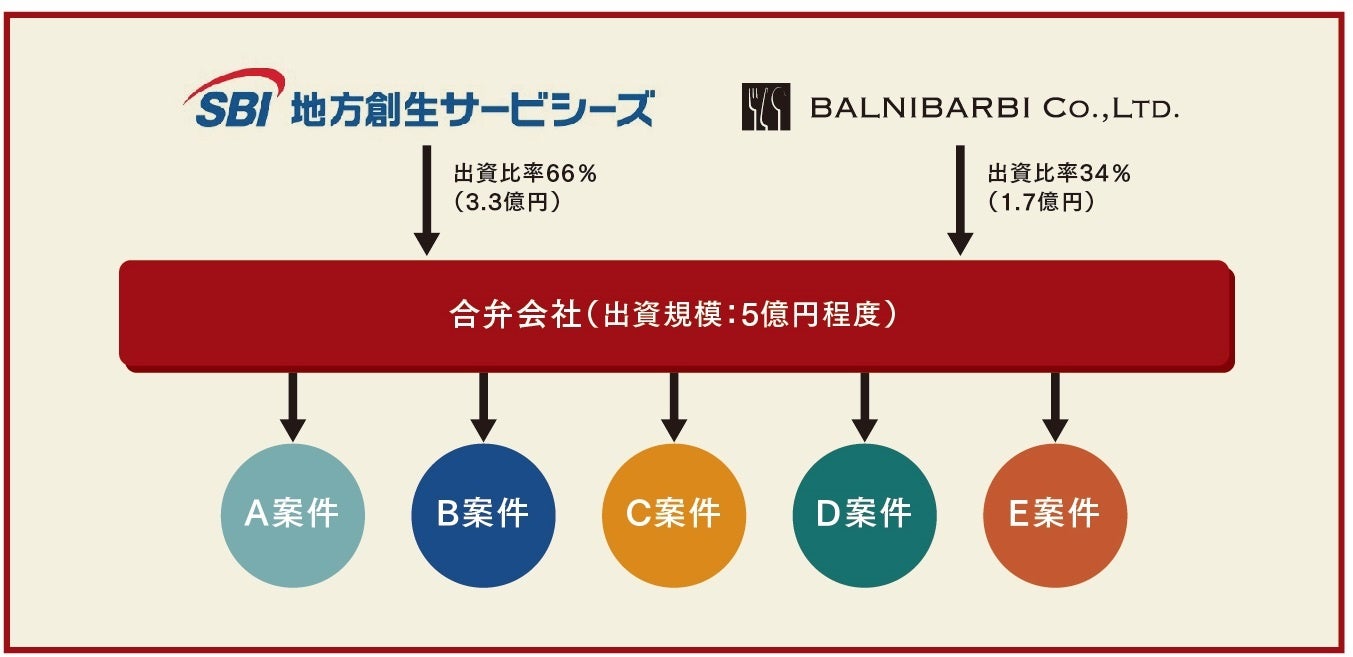 バルニバービ、SBIグループと合弁会社「SBI地域開発合同会社」を設立~日本国内5エリアの開発を視野に総額100億円規模の投資を実施~