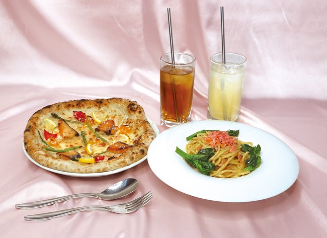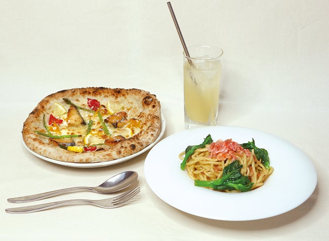 春が旬の食材を使った、華やかな彩りのメニュー「桜エビと菜の花のペペロンチーノ」と「サワラとアスパラガスのカルピオーネピッツァ」が期間限定で登場します。