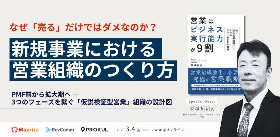 『新規事業における営業組織のつくり方~なぜ「売る」だけではダメなのか?PMF前から拡大期へ、3つのフェーズを繋ぐ「仮説検証型営業」組織の設計図~』セミナーを開催します