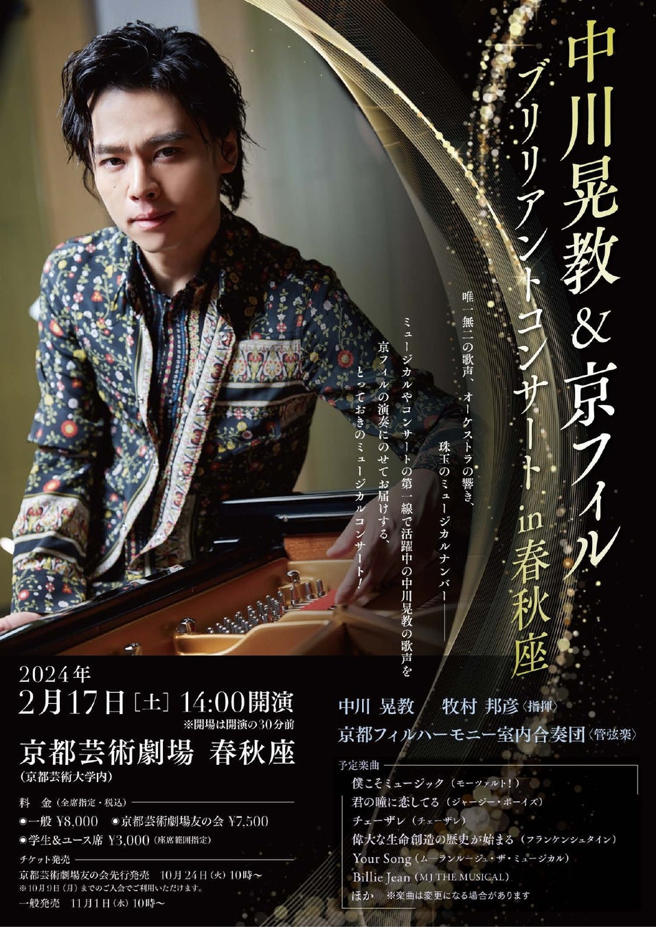 京都芸術劇場 春秋座で2/17(土)に「中川晃教&京フィルブリリアントコンサートin春秋座」を実施します!