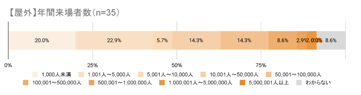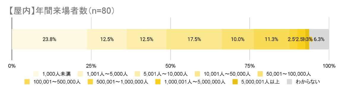 まず、今回のアンケート対象となった115施設の施設規模(年間来場者数)について。