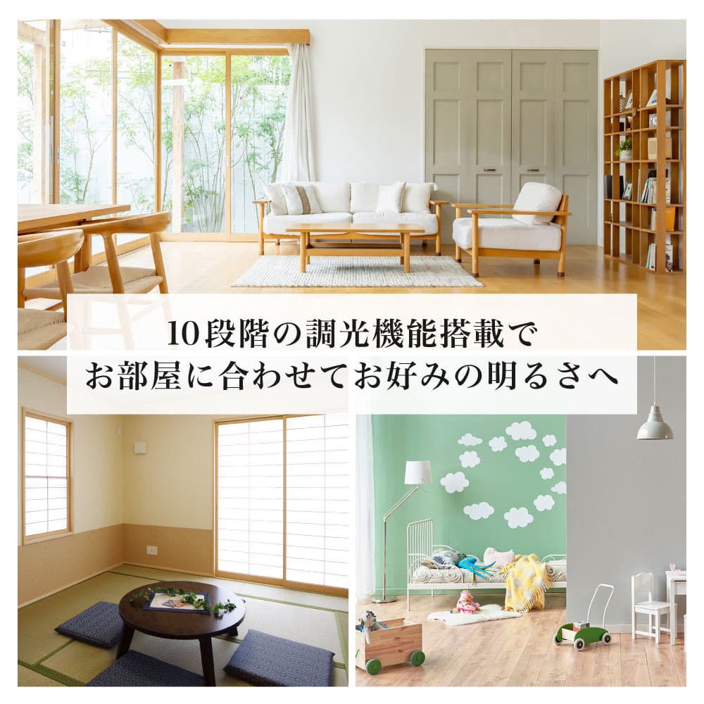 光の強さを10段階で調整することができます。就寝前は光量を減らして暗めに、手元が見えにくいような細かな作業をするときは光量を増やして明るめにするなど、お客様の日々の生活に寄り添った照明に仕上がっております。