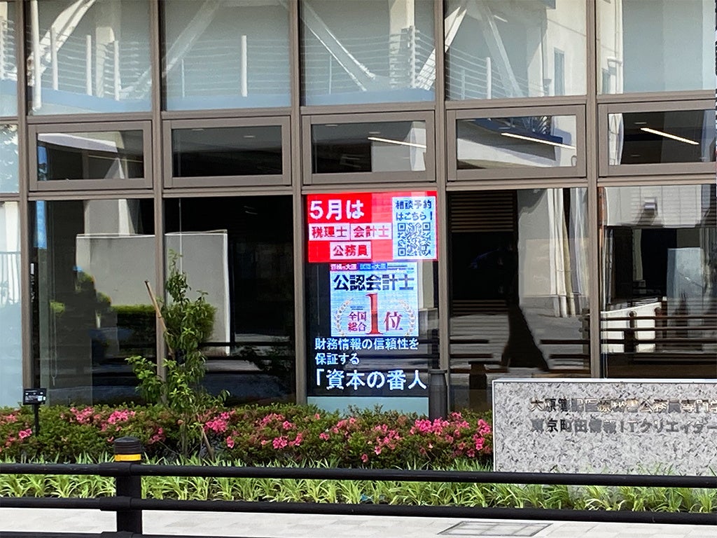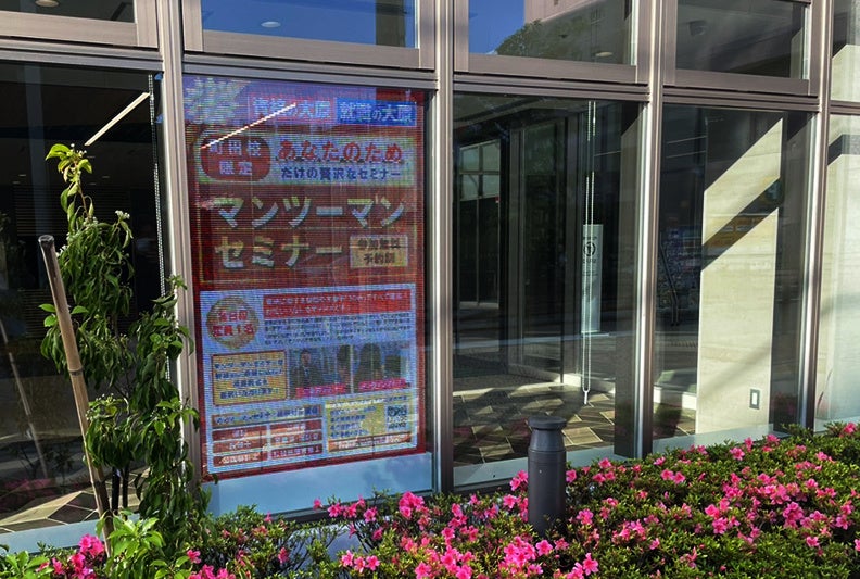 東京都町田市にある、学校法人大原学園町田校の1号館校舎北側エントランスにウィンドウビジョンを設置しました。