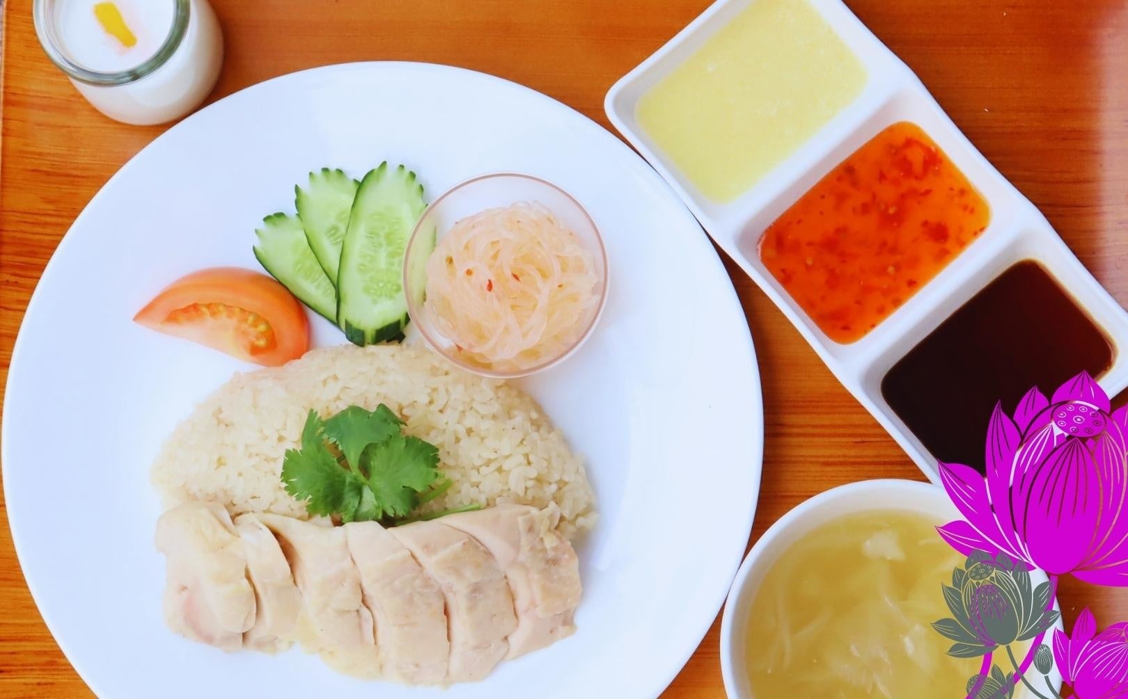 低温調理でじっくりと柔らかくジューシーに仕上げた鶏もも肉と、鶏出汁に生姜を加えて炊き上げた風味豊かなチキンライスが相性抜群!