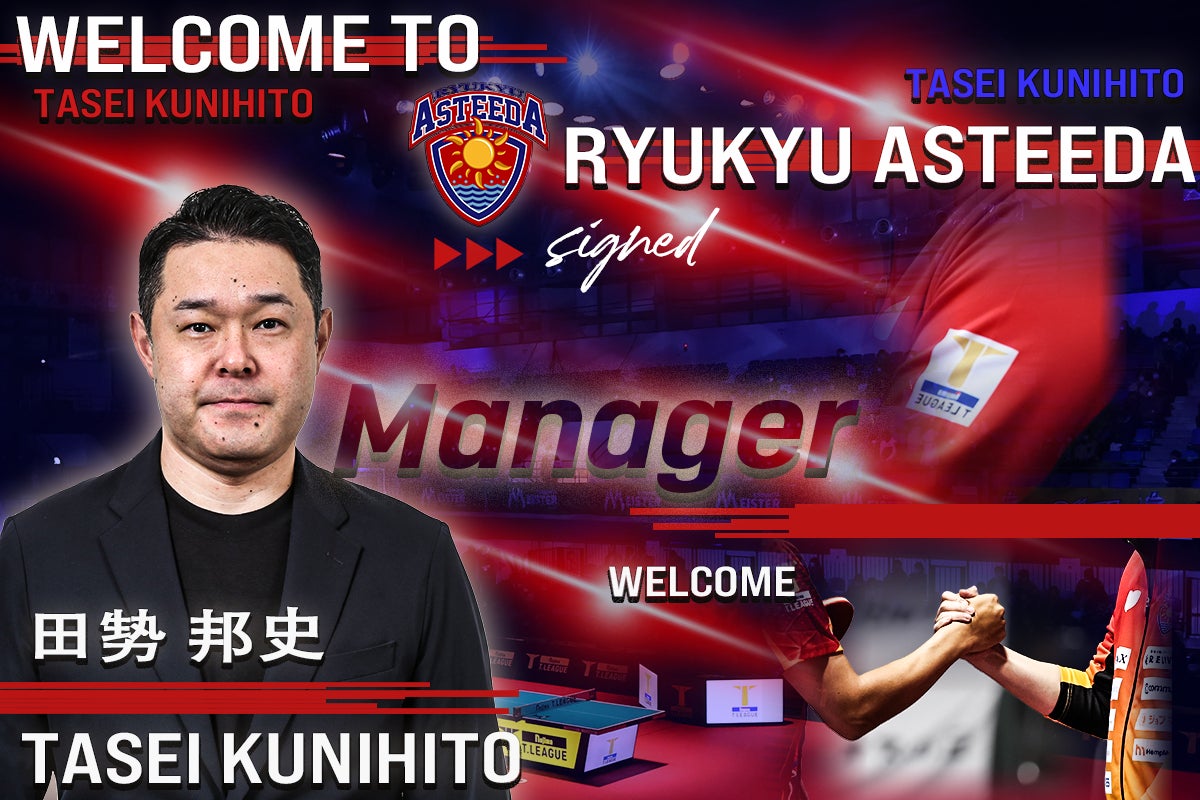 この度、日本卓球界を代表する指導者のお一人である田㔟邦史氏を、琉球アスティーダの新監督としてお迎えできることを、この上ない喜びと共に、大変光栄に感じております。田㔟氏が男子日本代表監督として培われた卓越した指導力、世界で戦い抜いた豊富な経験、そして選手育成にかける情熱は、我々が目指す『新生琉球アスティーダ』、そして『アスティーダ・卓球イノベーション・プログラム』を実現するための、まさに最後のワンピースだと確信しておりました!