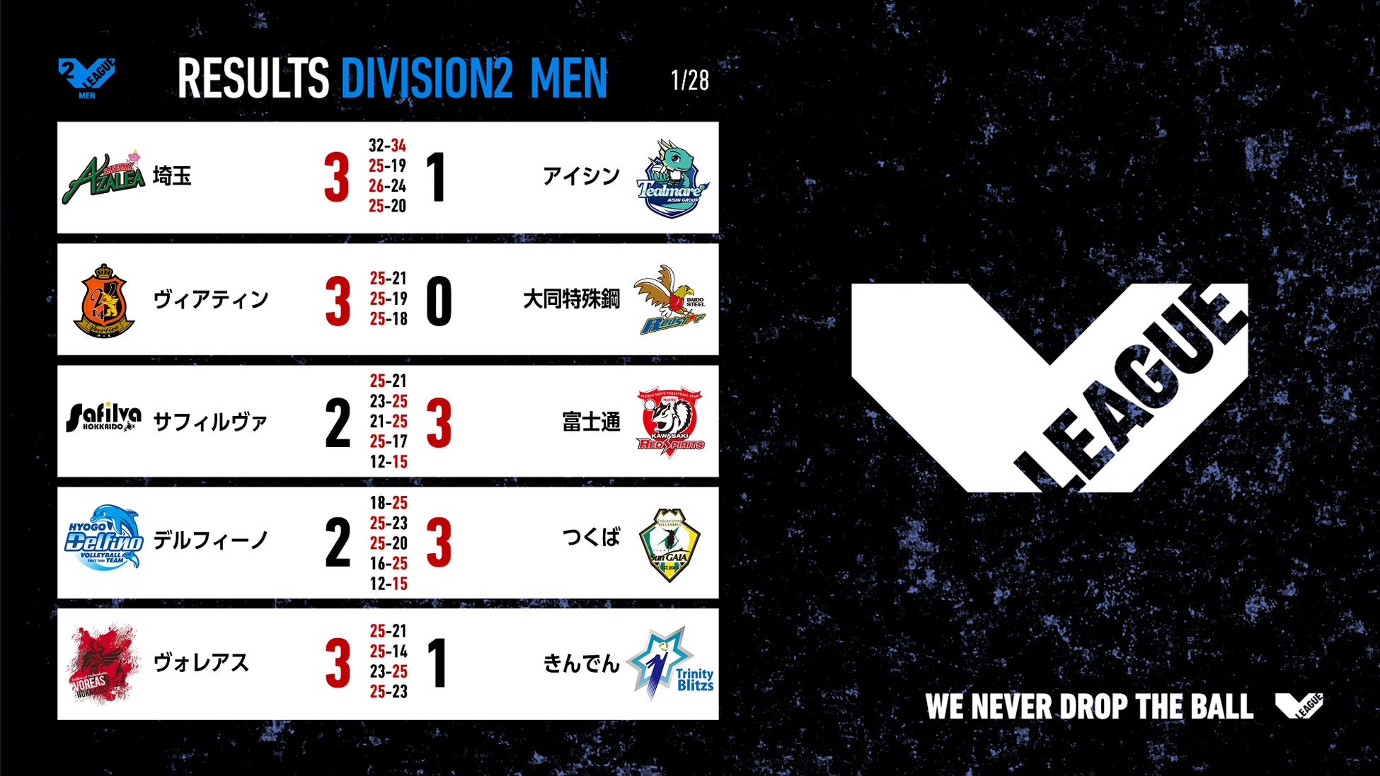 バレーボール国内最高峰リーグ V.LEAGUE【1月28日の試合結果】