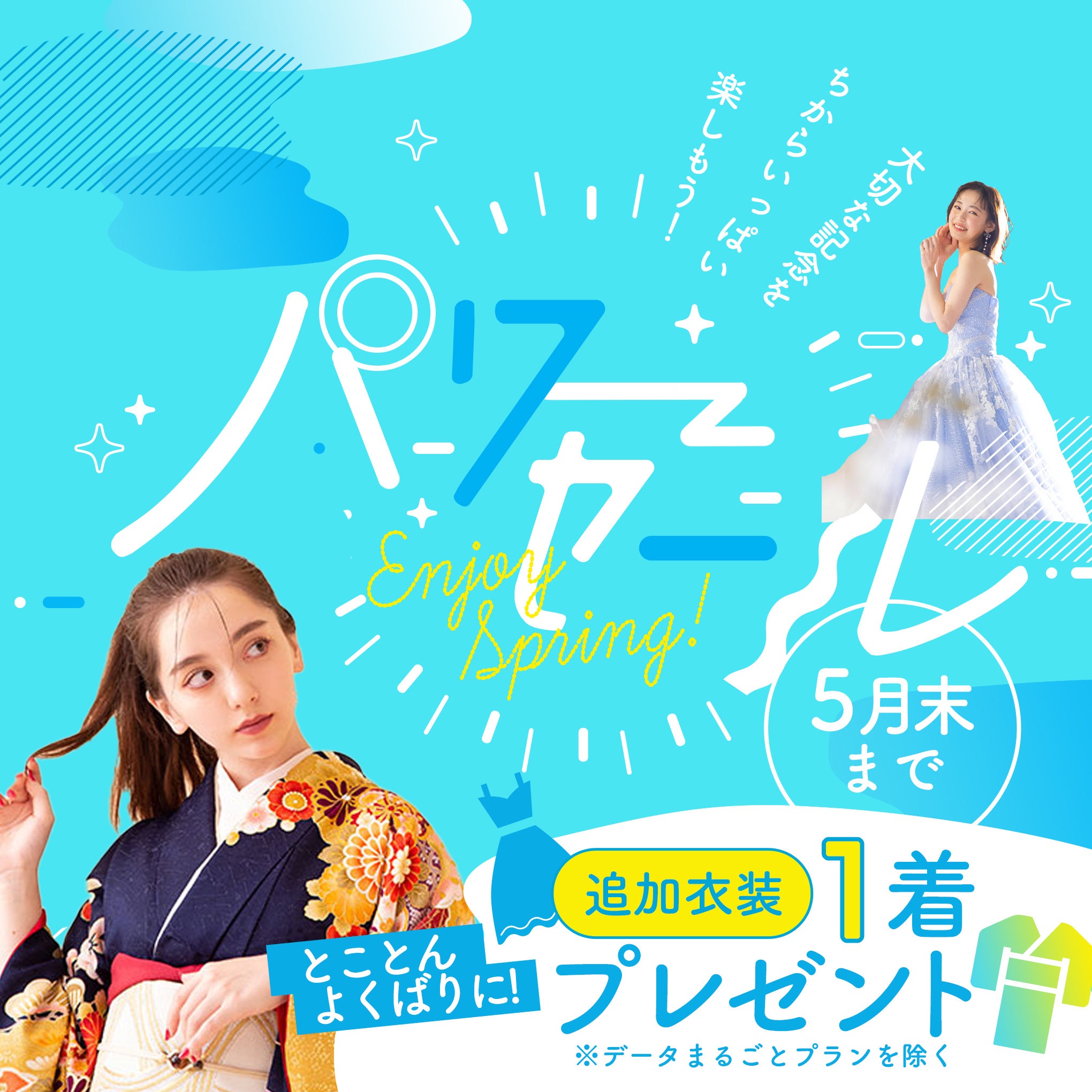 写真工房ぱれっと(有限会社 三景スタジオ)では、"大切な記念をちからいっぱい楽しもう!"として、5月9日〜5月31日までの期間中に「パワーセール」を開催いたします。特別な1日をさらに楽しめるこのキャンペーンで、沢山のお客様に元気やワクワクをお渡ししたいという想いを込めてスタートします。
