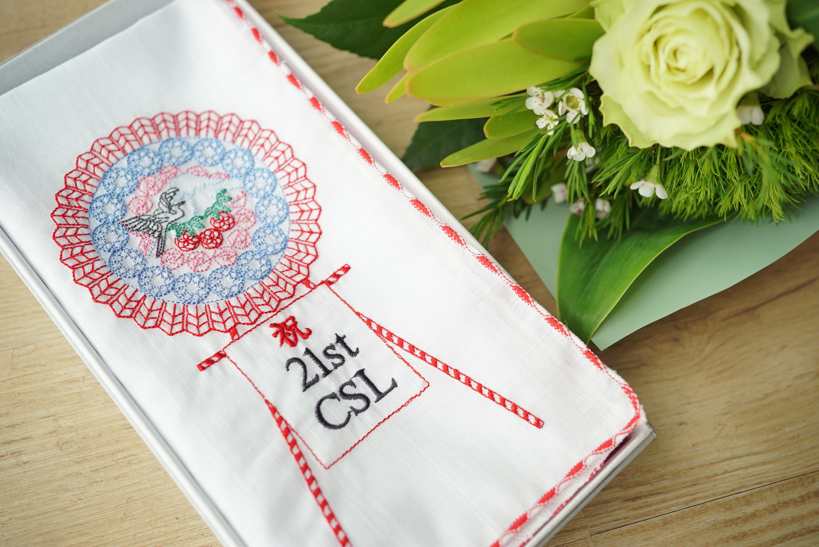 クラシクス・ザ・スモールラグジュアリでは、ブランド誕生以来、ハンカチーフを通して、想いを届けることのできるハンカチをご提案しております。これまで「ありがとう」や「応援」などメッセージ性の高いデザインを展開してきましたが、新たに祝福の気持ちを表現した『花輪』のハンカチを発売しました。開店祝いはもちろん、結婚記念日や還暦のお祝い、誕生日など、さまざまなお祝い事のギフトにおすすめです。心からの祝福をハンカチに込めて、特別な一枚を贈りませんか。