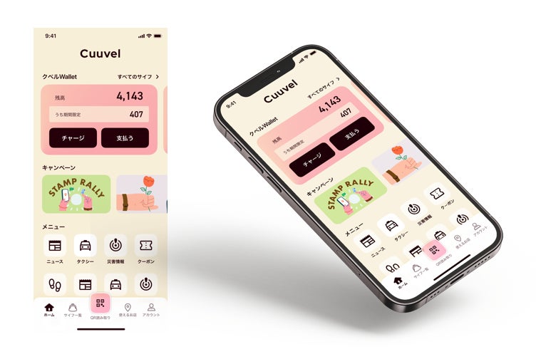 「Cuuvel」ではマネーチャージや決済が行える単位である「サイフ」を任意に増やすことが可能です。自治体は「サイフ」ごとに利用店舗や上限等の設定および管理が行えるため、事業(子育て給付やプレミアム商品券等)の単位で「サイフ」を作成することで、1アプリで地域内のさまざまな施策を実施することができます。ユーザーは店舗で利用できる「サイフ」を選択し、決済を利用することが可能で、複数のデジタル通貨を1アプリで利用できるため異なるスマートフォンアプリのダウンロードや登録といった煩雑な作業の必要がありません。
