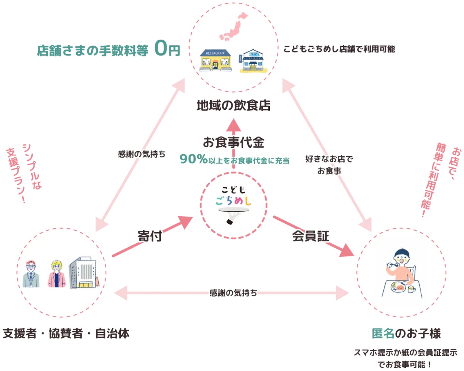 スポンサー企業は、スポーツチームを通じて子どもたちの食事を支援する「パートナーメニュー」を購入。その資金が地域の子どもたちに食事チケットとして提供され、子どもたちは、こどもごちめし加盟店舗で無料で食事を摂ることができます。