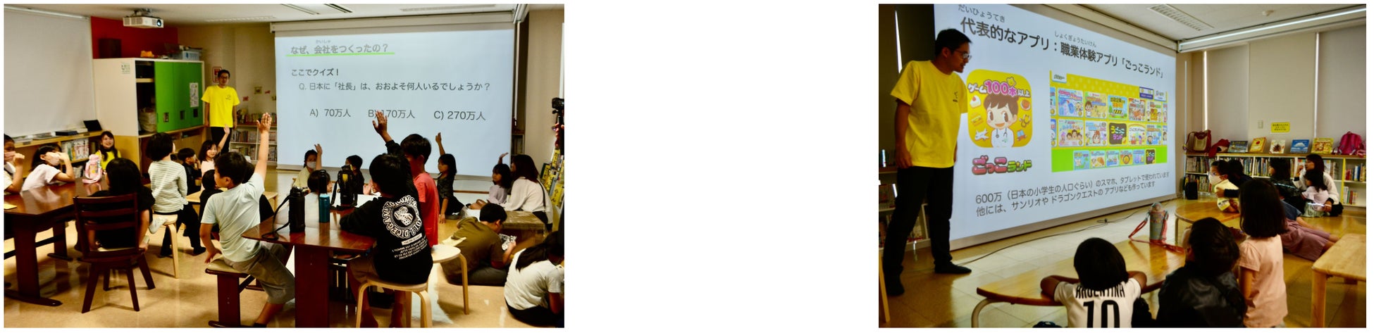 キッズスターと明太子のかねふくが、子ども向け社会体験アプリ『ごっこランド』のゲームづくりを体験するワークショップを渋谷区『みらいの図書室』にて実施